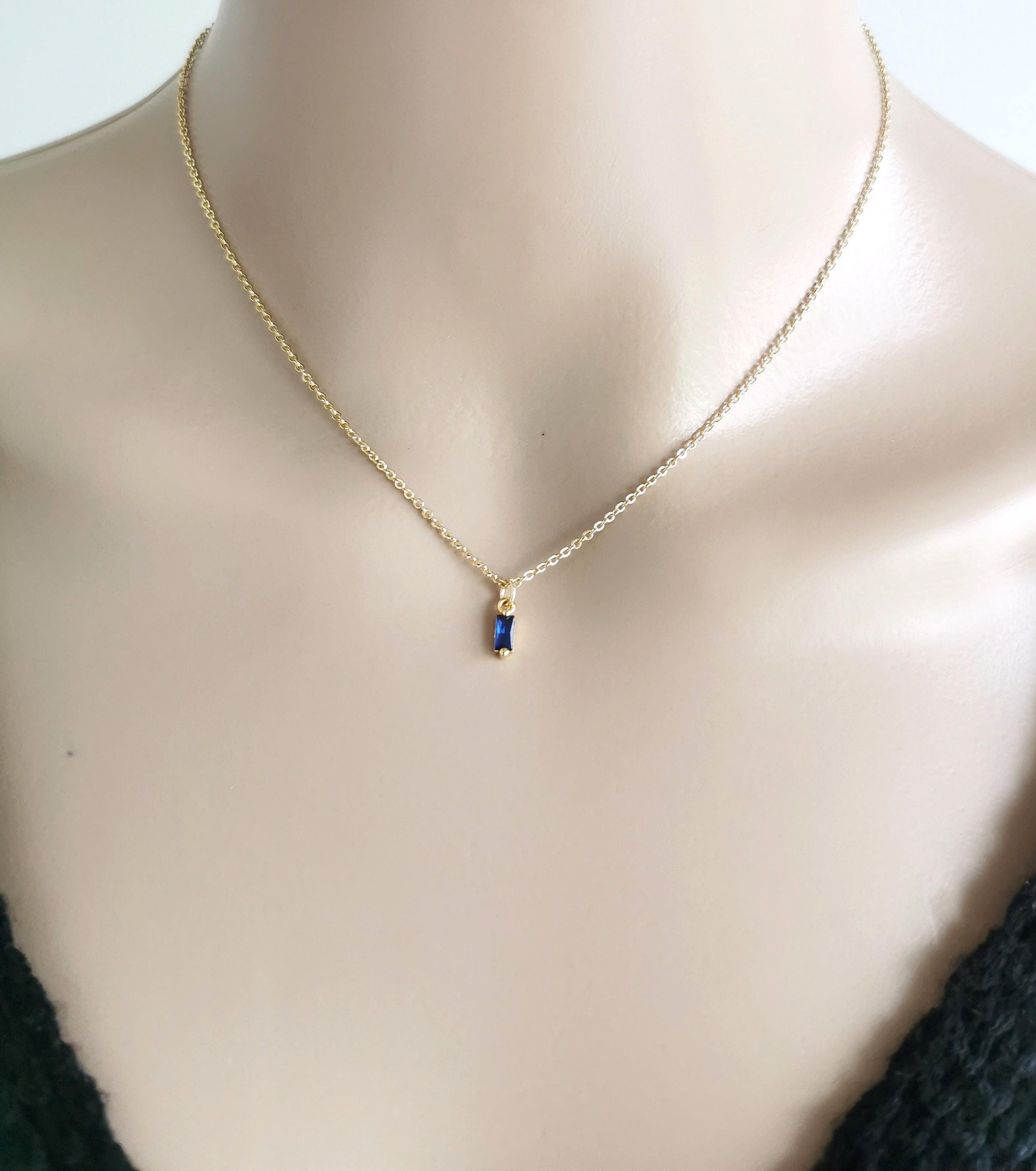Cubic Zirconia Sapphire Birthstone gold necklace, a lovely gift for those with birthdays in September.