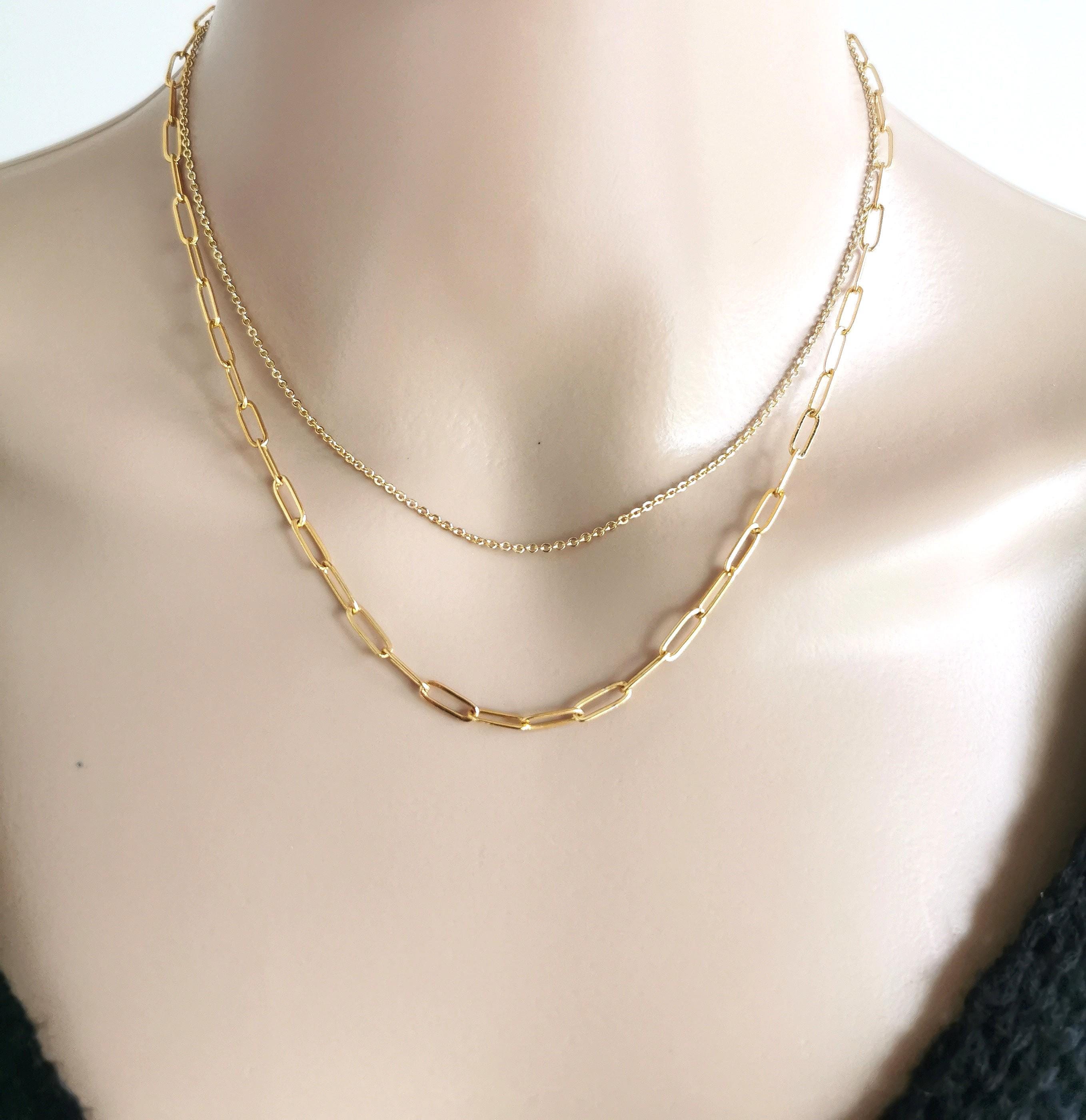 Layering Necklace - available as a necklace (gold filled necklace or gold paperclip necklace) or as a necklace layering set (2 necklaces with 1 lobster clasp closure).