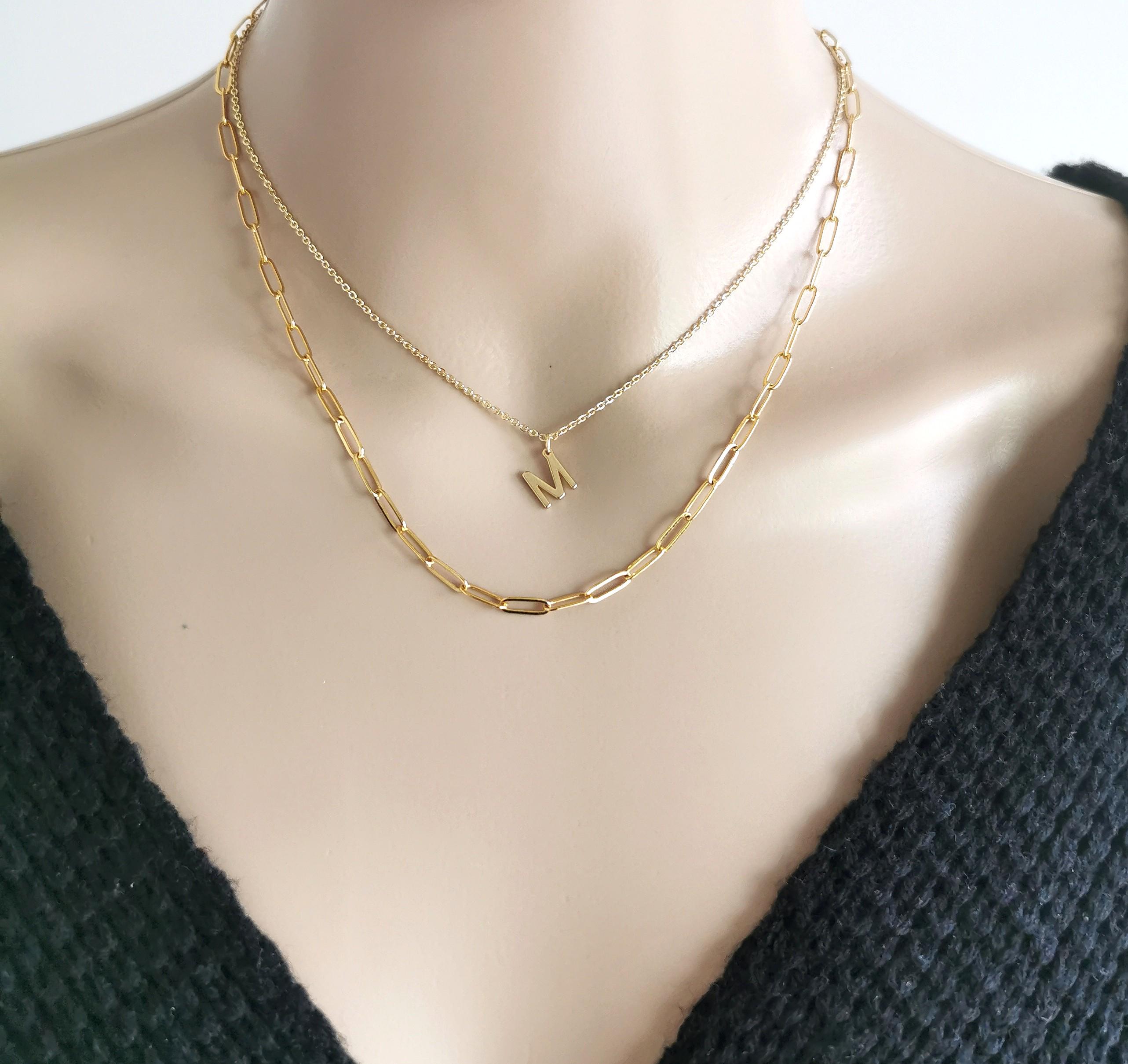 Bottom layer necklace = gold plated paperclip necklace