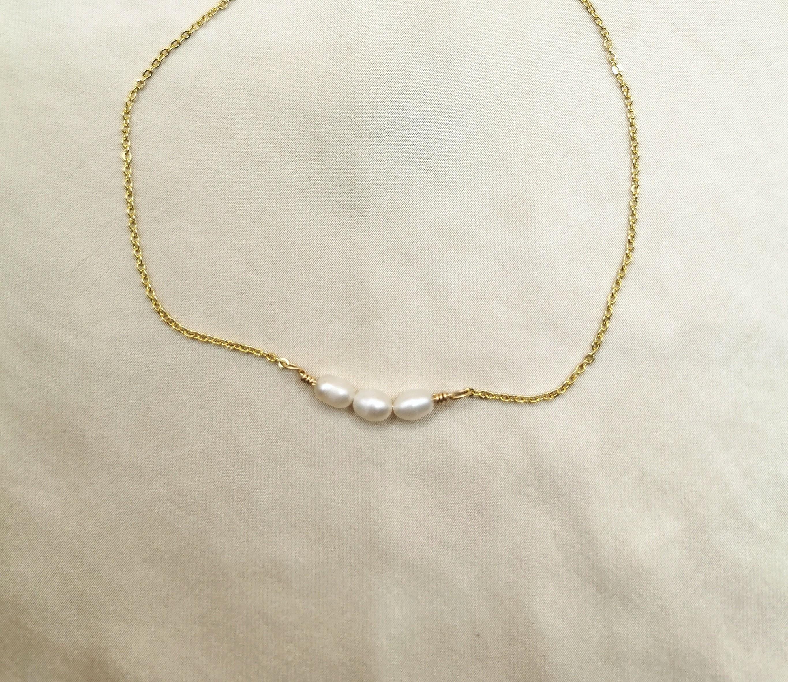 - Tiny natural freshwater pearl measures at 4mm length on a gold filled wire