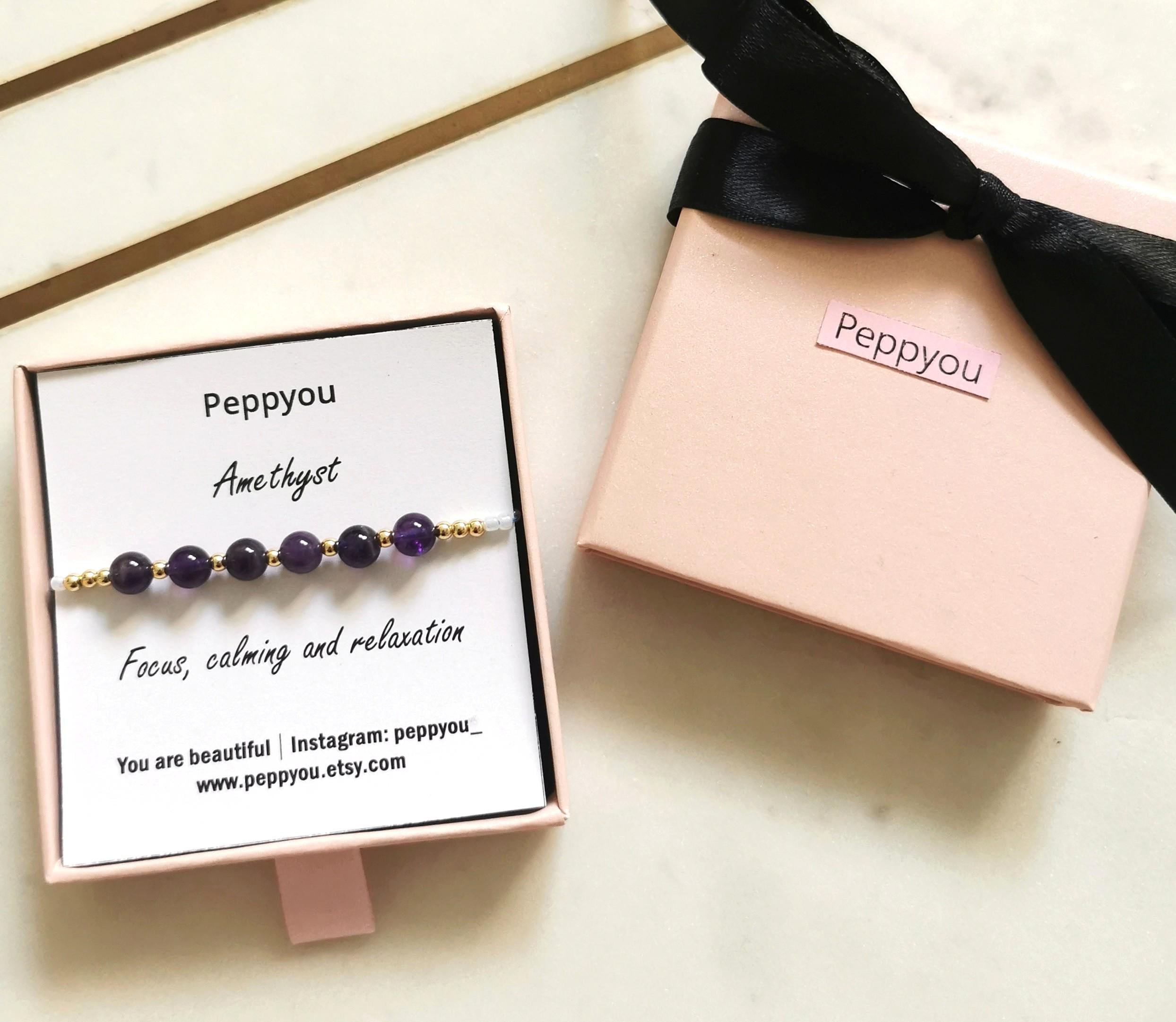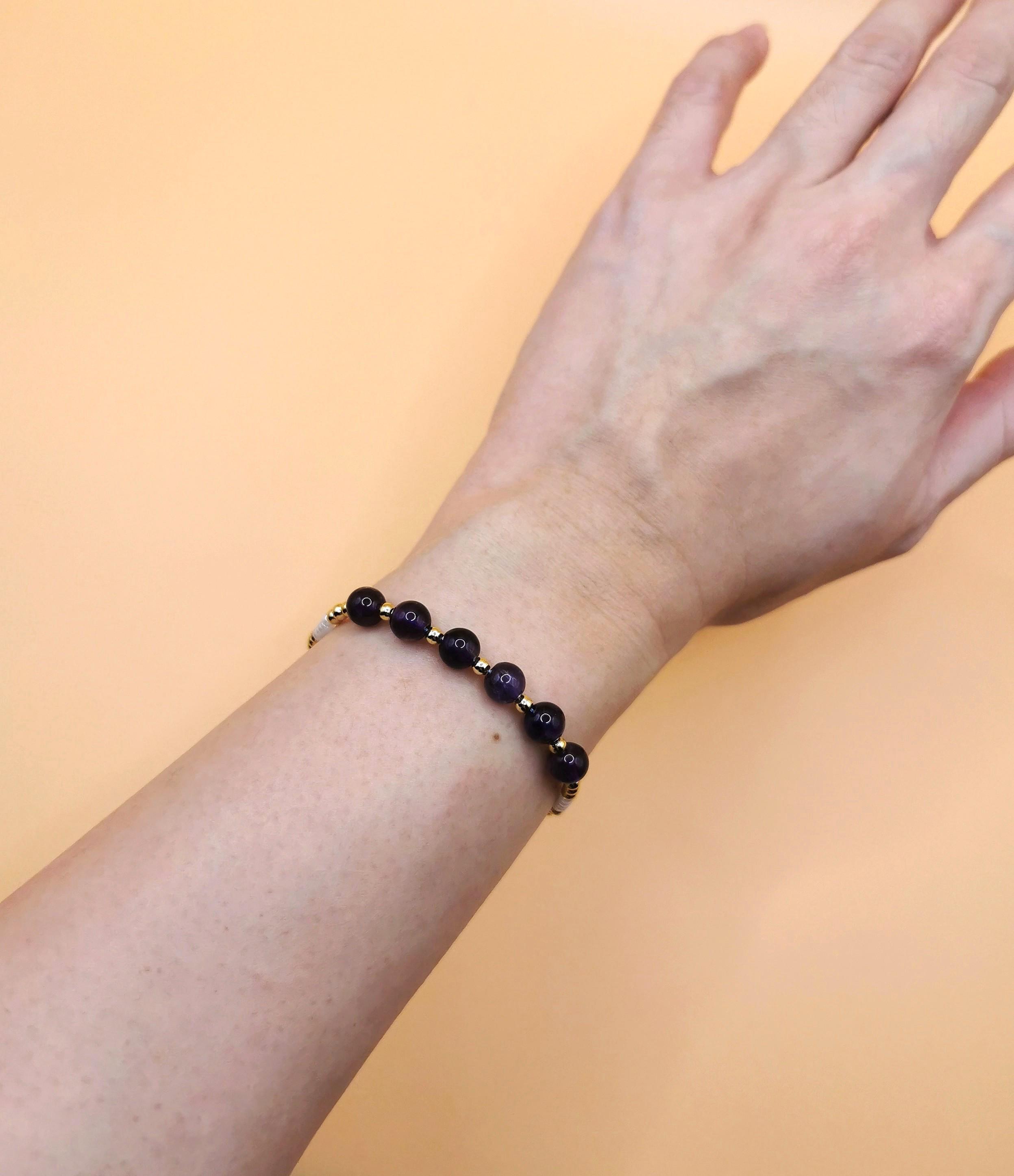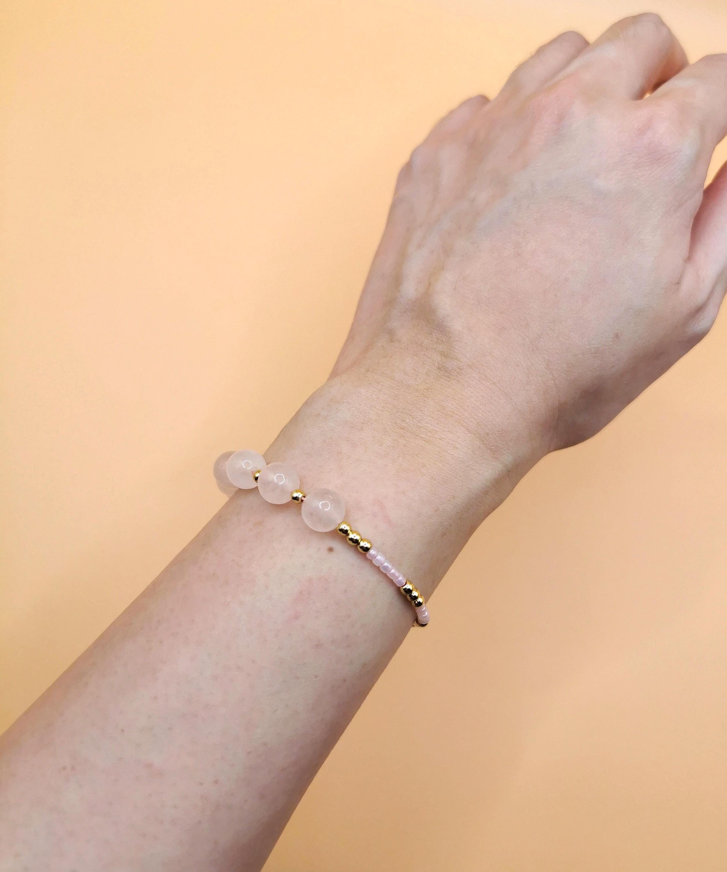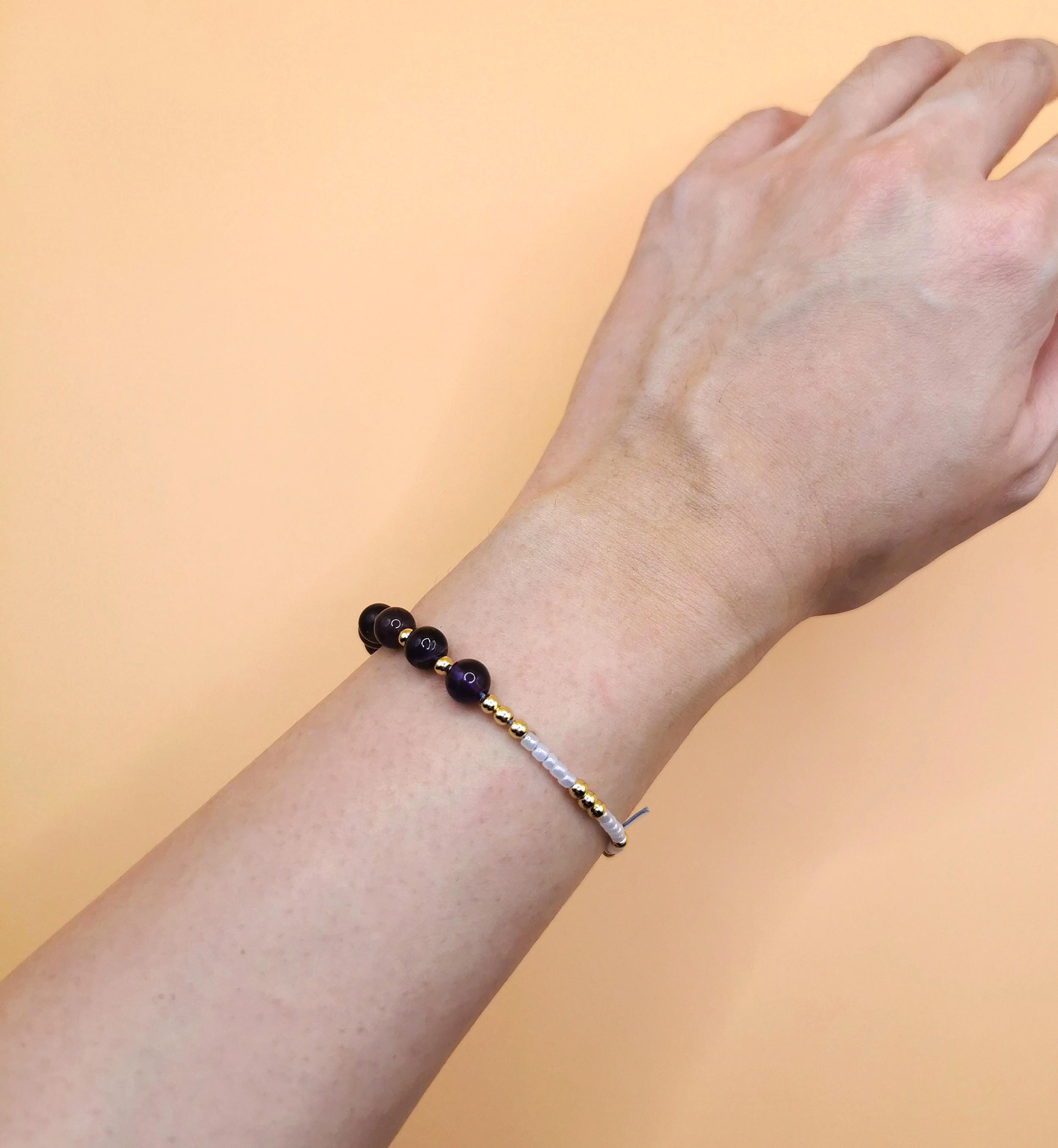 Your bracelet include 6 round gemstones at the center of bracelet. Follow by 18k gold filled bead and glass seed bead on left and right.