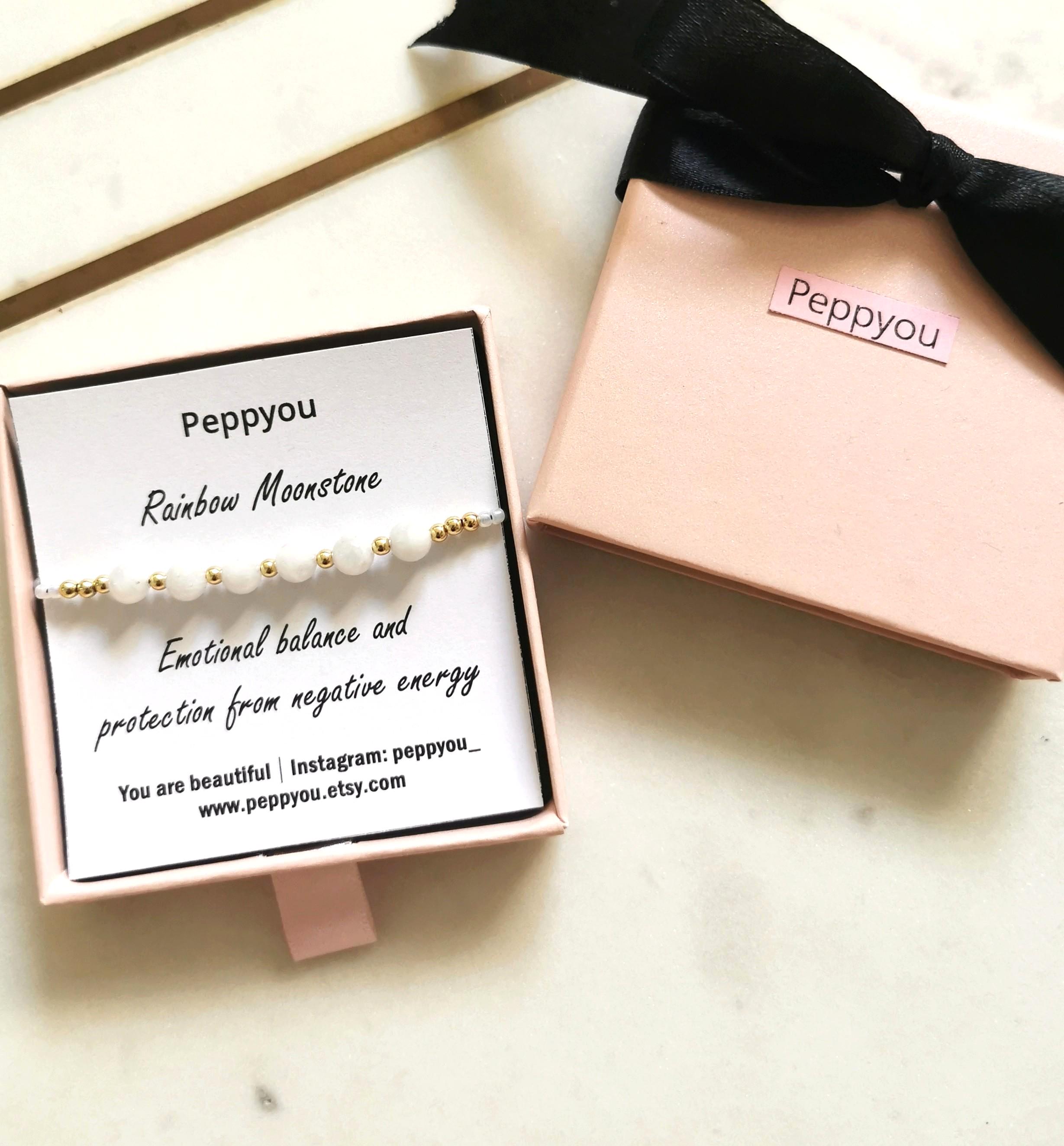 Beautiful rainbow moonstone gemstone cord bracelet.