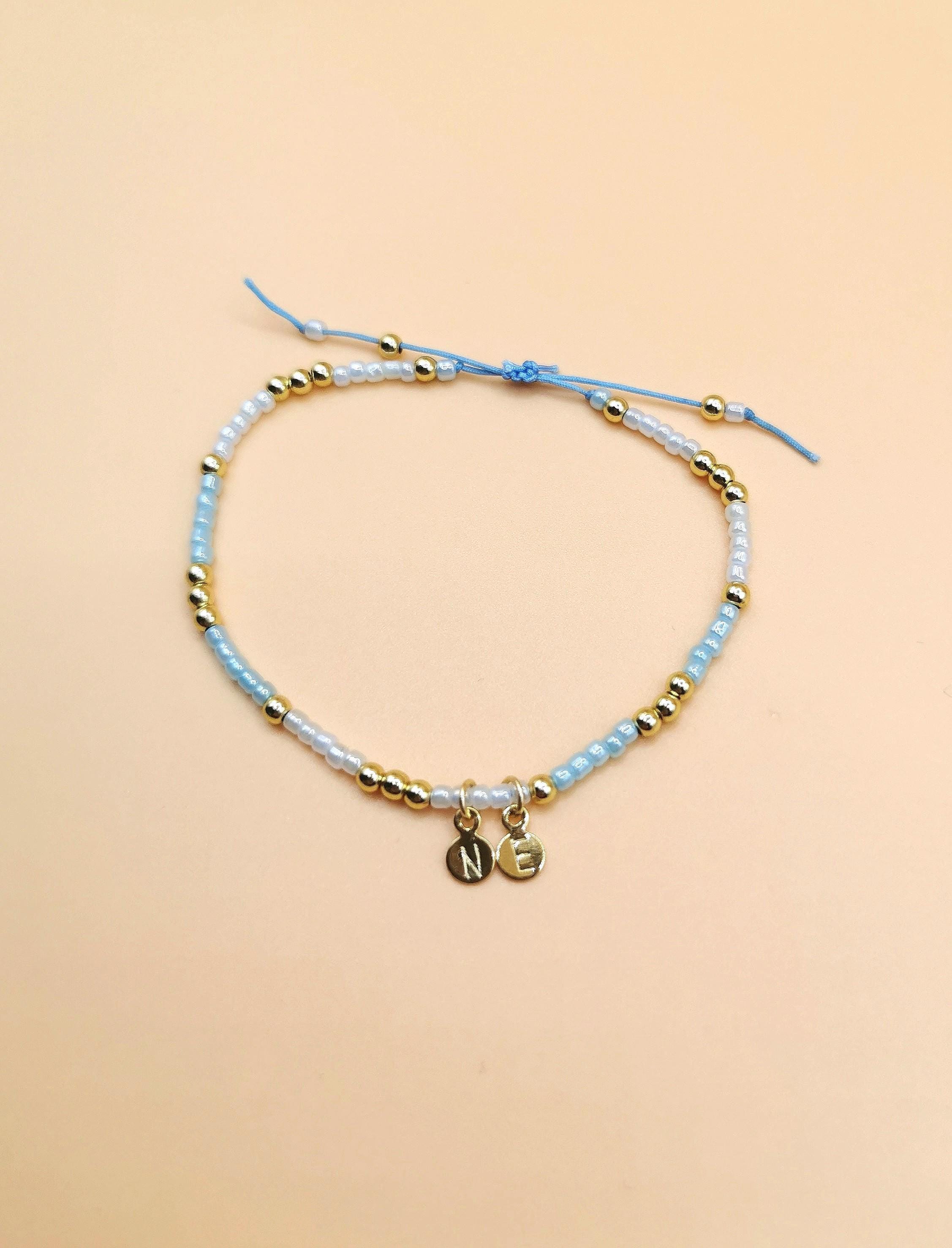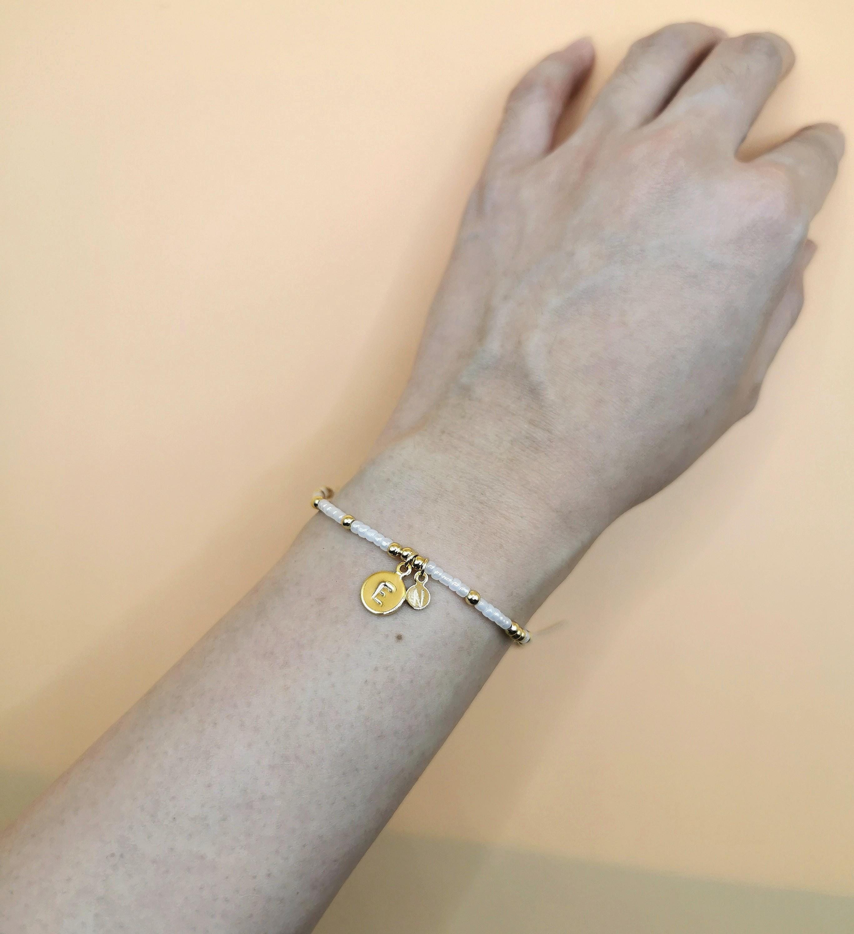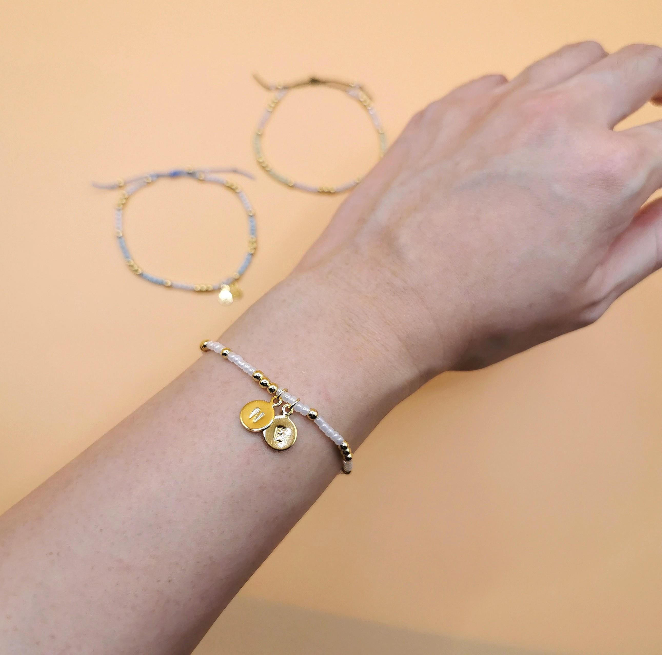 Bead bracelet with gold filled beads and glass seed beads - with the personalize option to add on a charm with handstamp initial or without the charm.