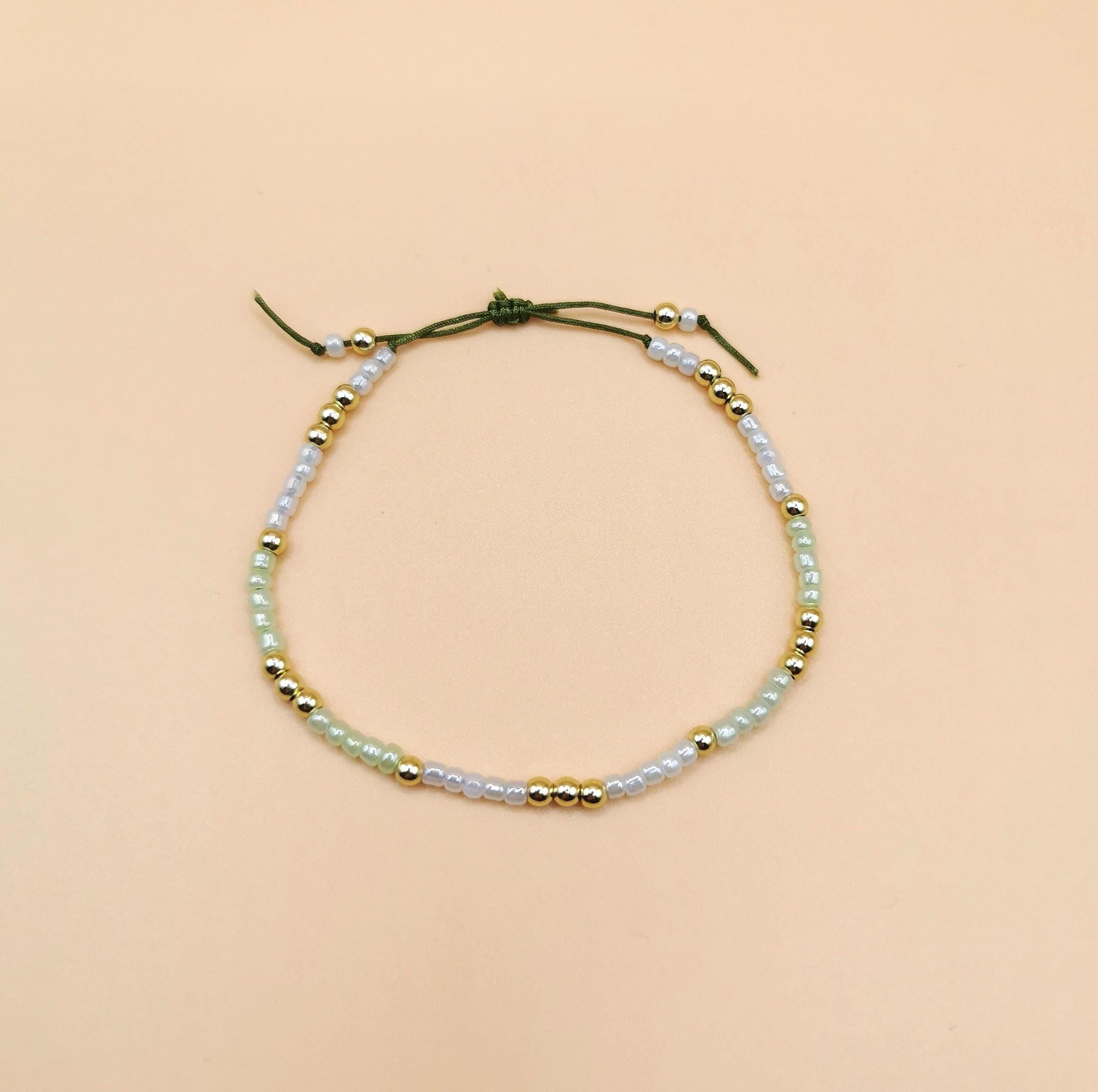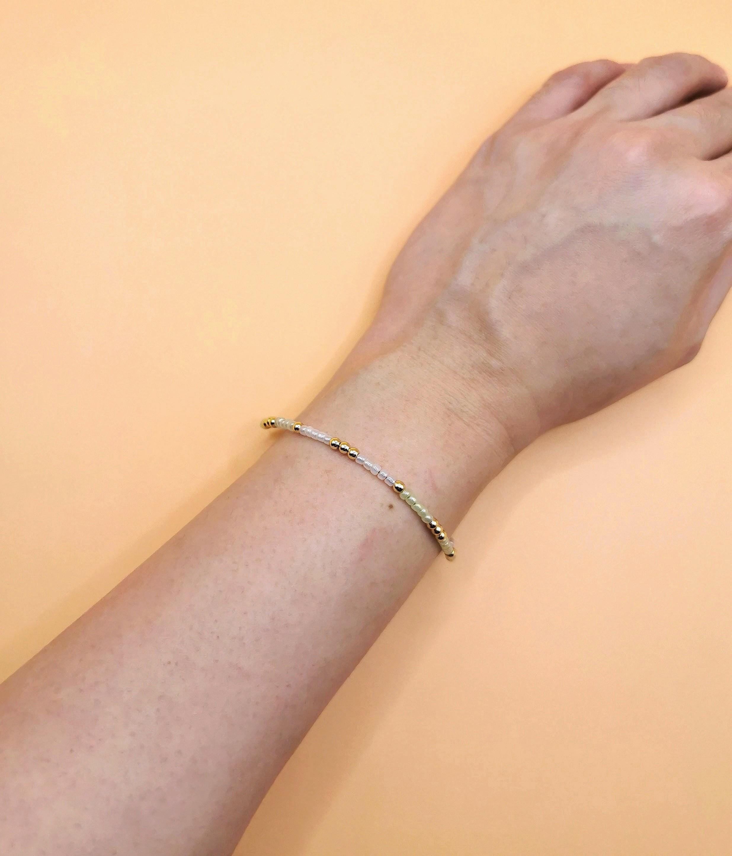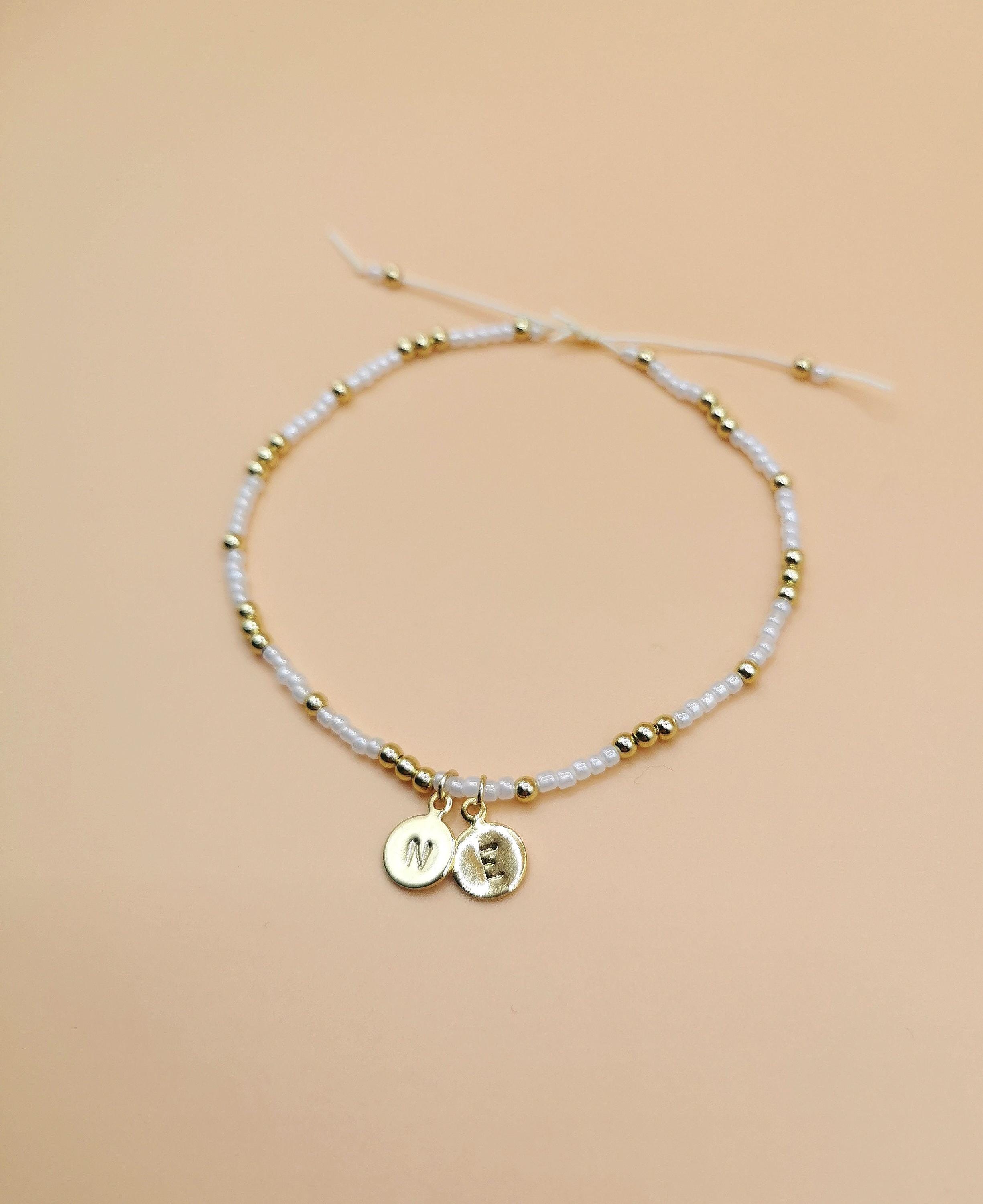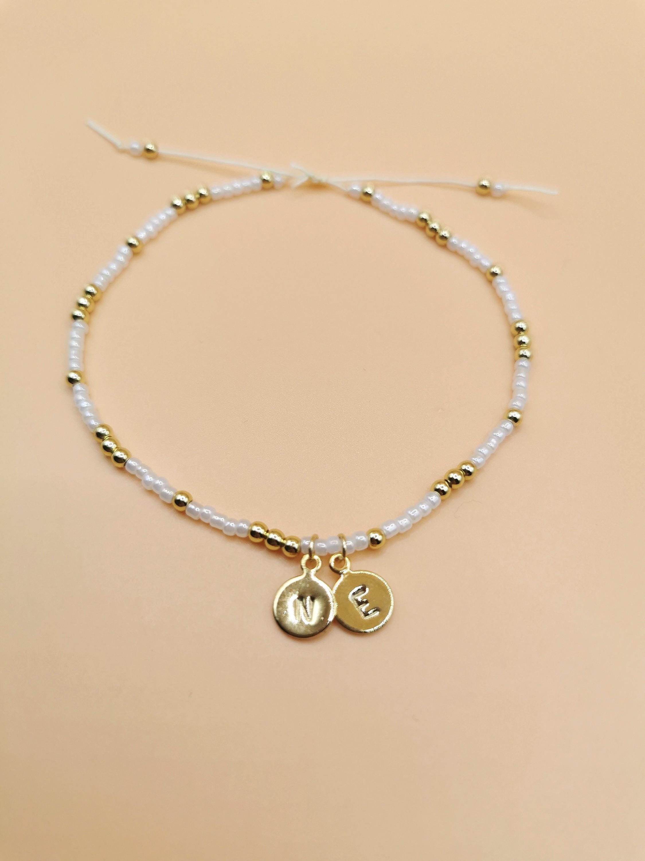Bead bracelet with gold filled beads and glass seed beads - with the personalize option to add on a charm with handstamp initial or without the charm.