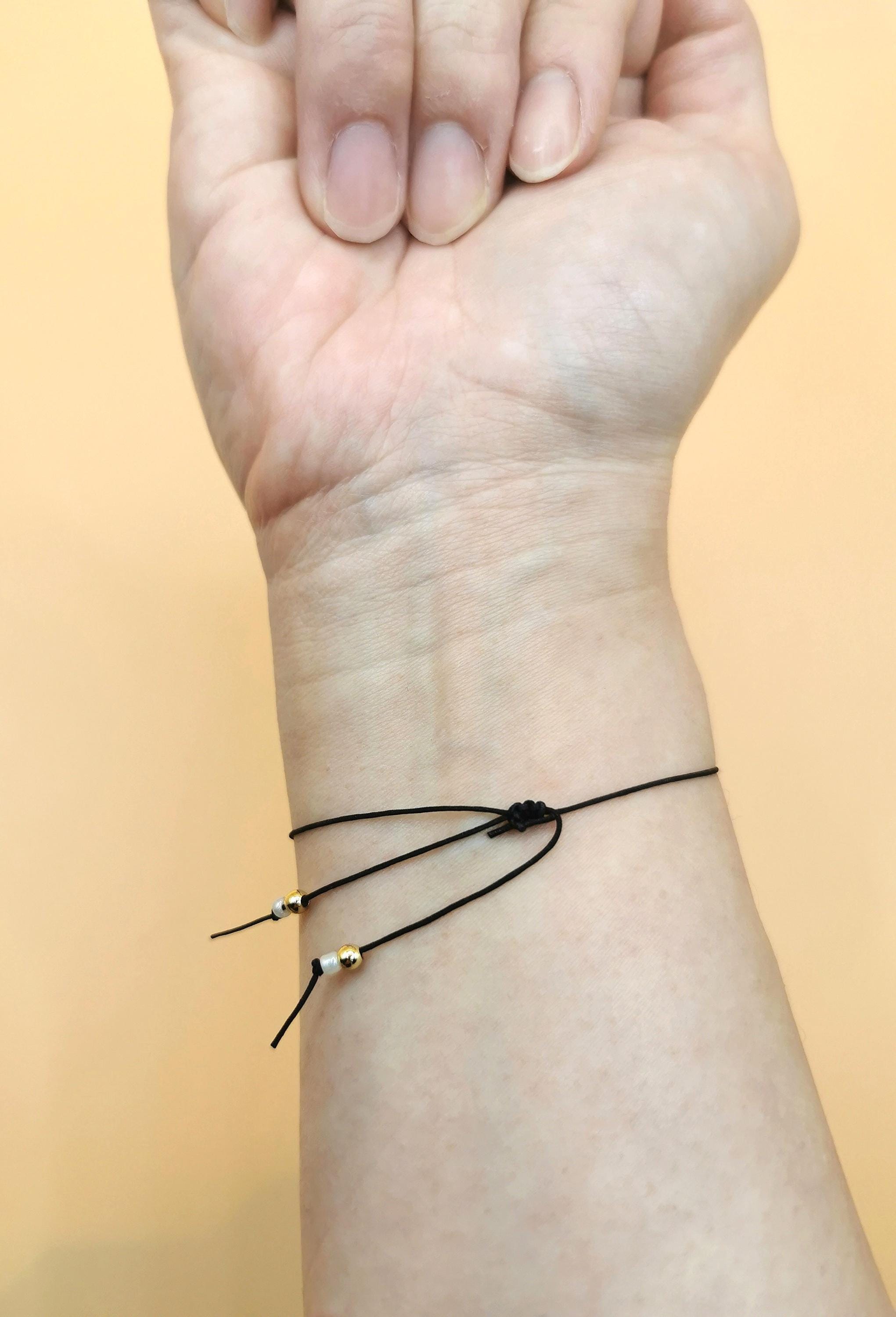 This is an adjustable bracelet, comfort fit, easy and stylish. Pull the strings to put the bracelet and also to take out the bracelet.