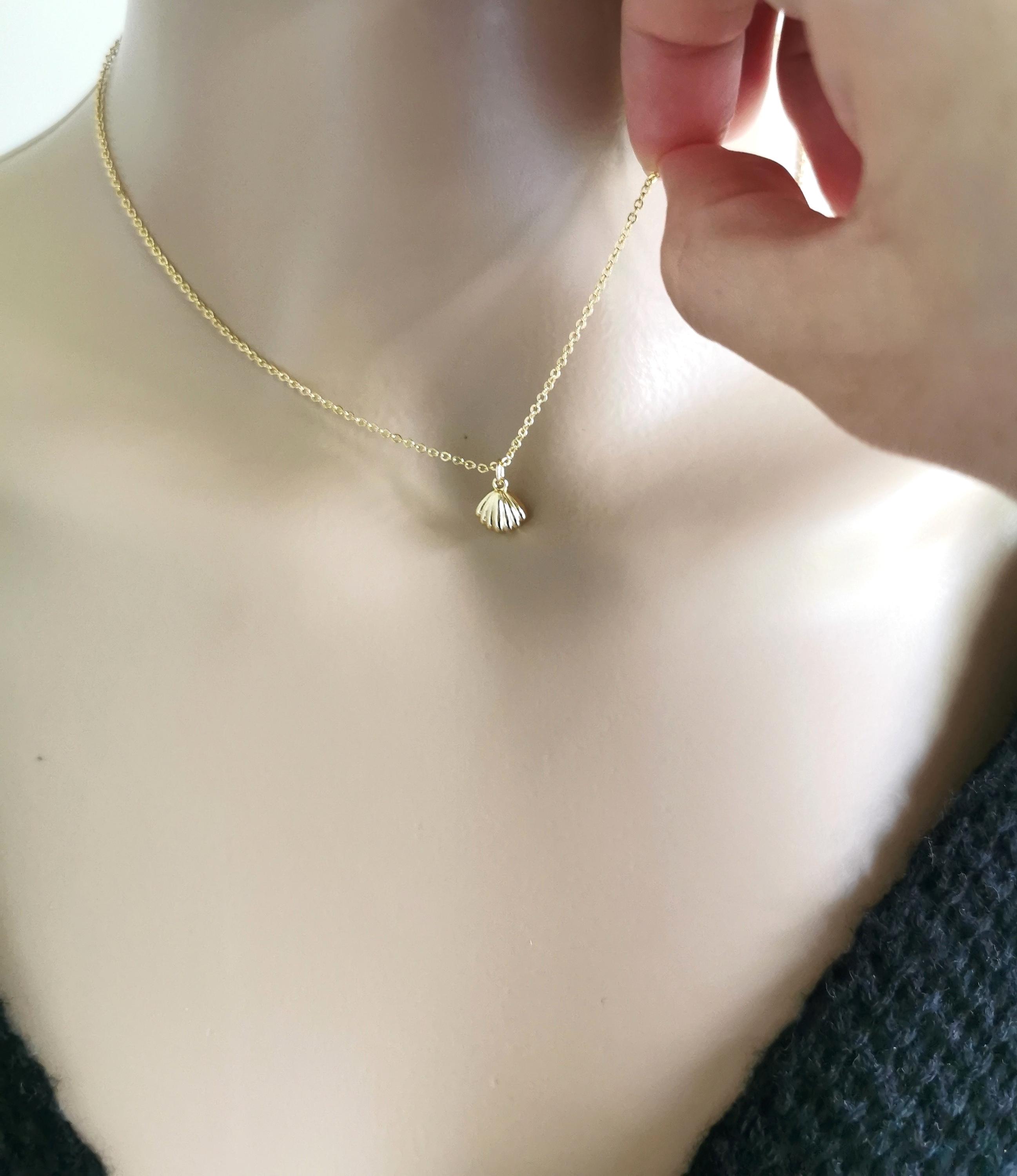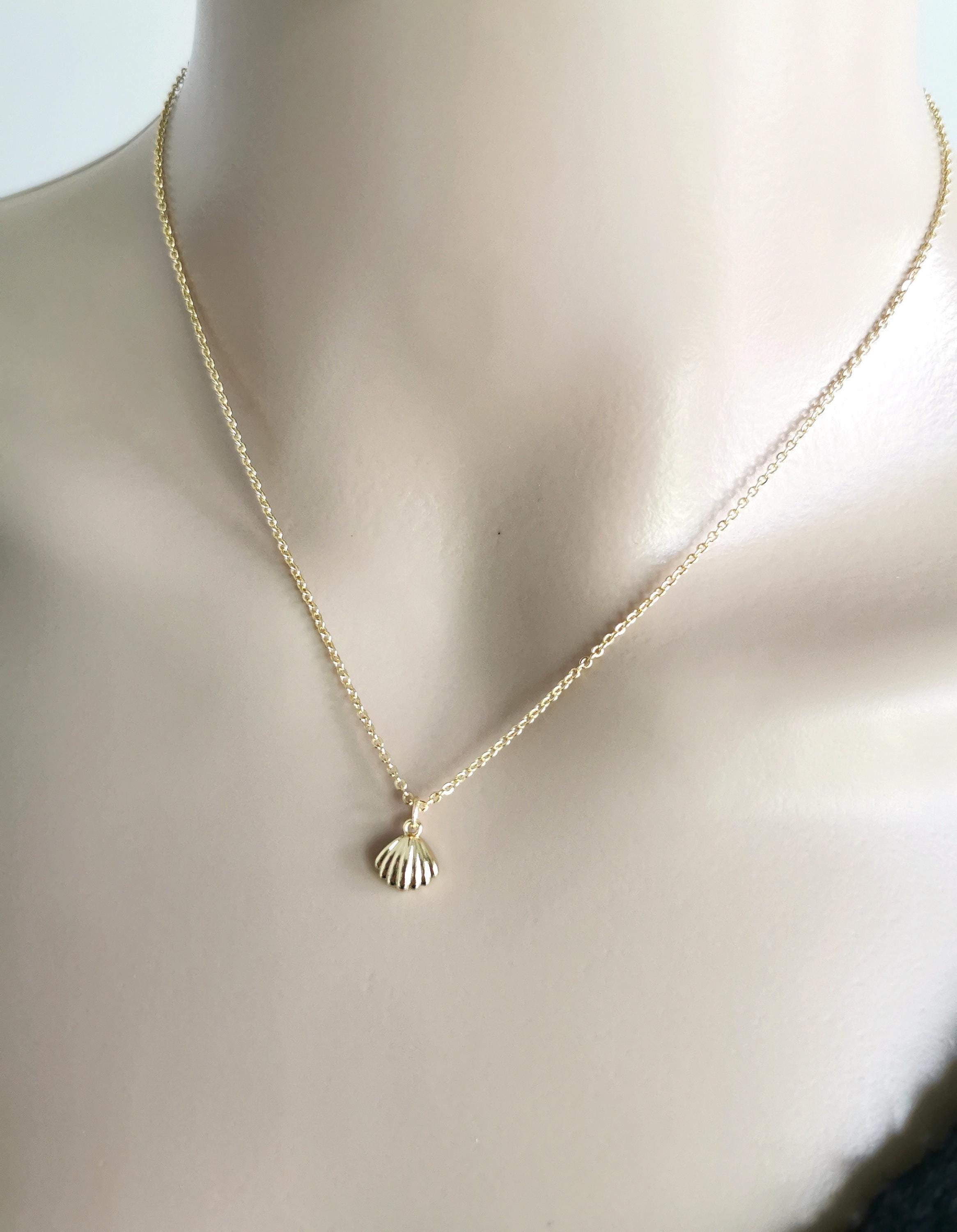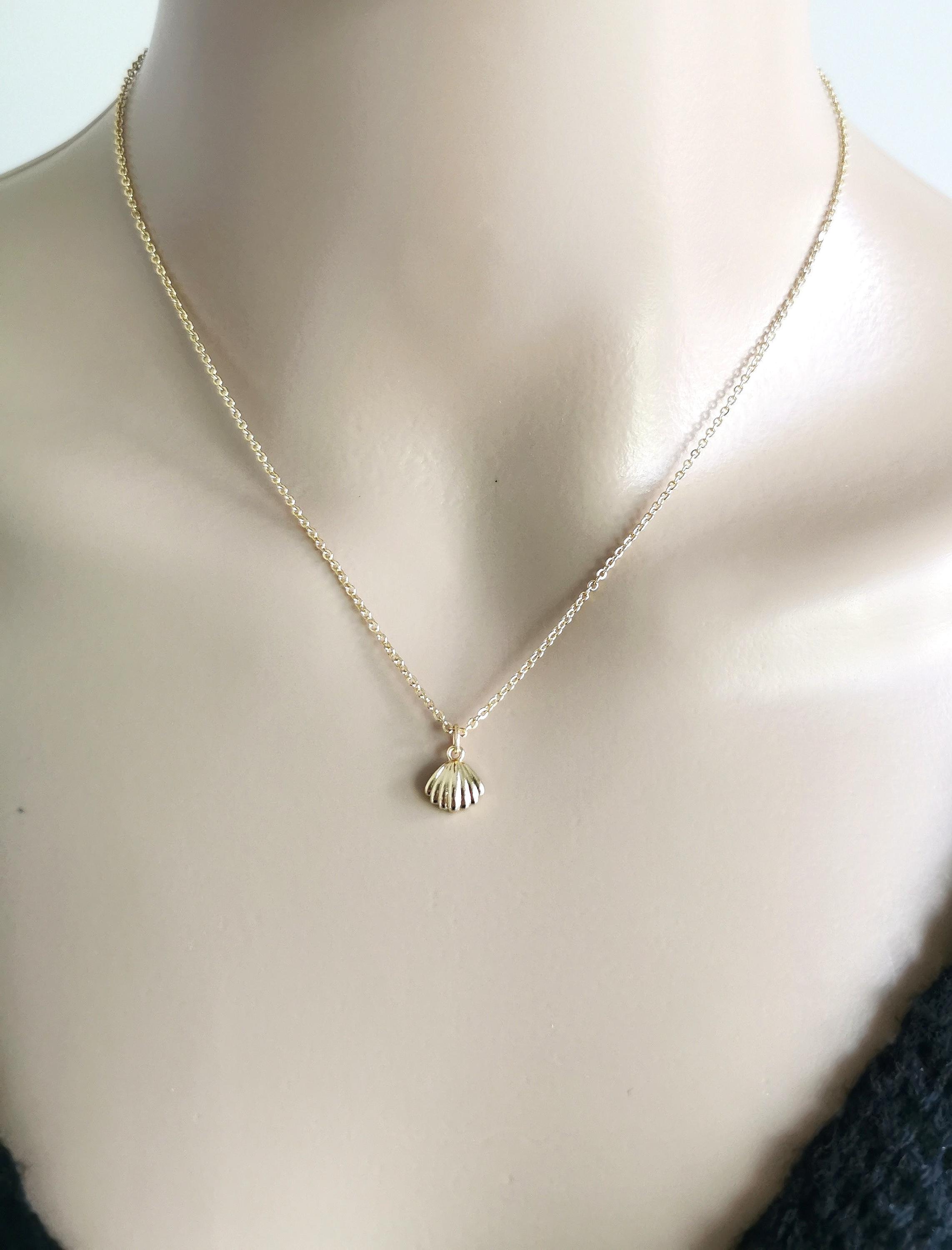 Gold Filled tiny shell necklace, lovely shell necklace perfect for everyday wear, great match with work outfits and weekend casual outings.