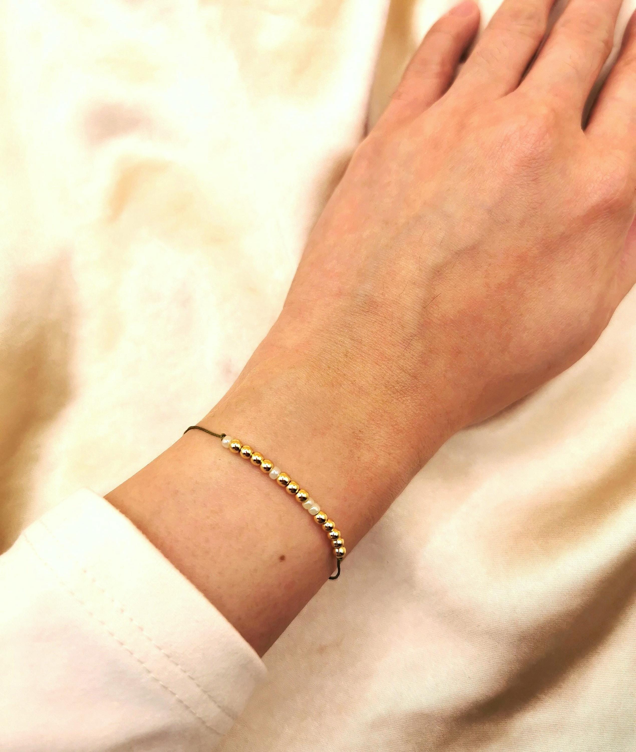 Custom secret hidden message morse code cord bracelet, with 18k gold filled ball beads.