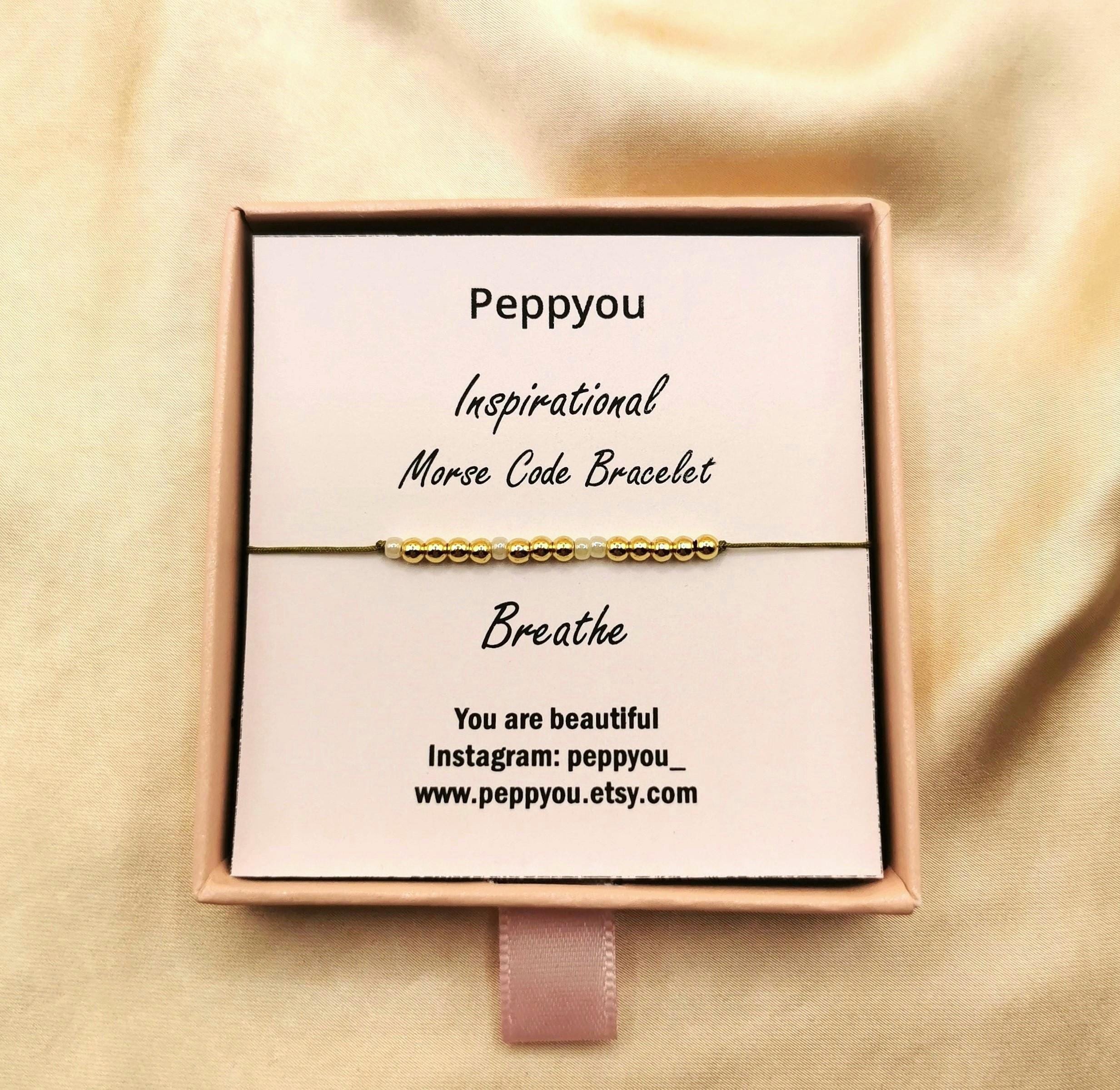 This morse code says 'breathe'. Customize your bracelet with bracelet cord colour, glass seed beads colour - this bracelet is uniquely yours only.