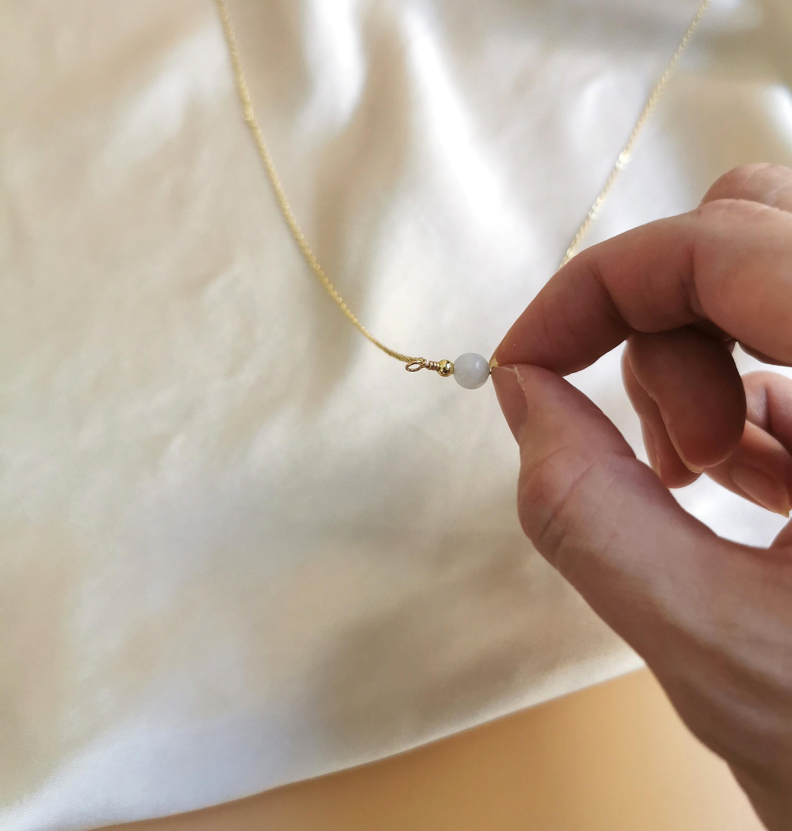This necklace in image shows 1 rainbow moonstone gemstone, available options for 2 or 3 gemstones at checkout.