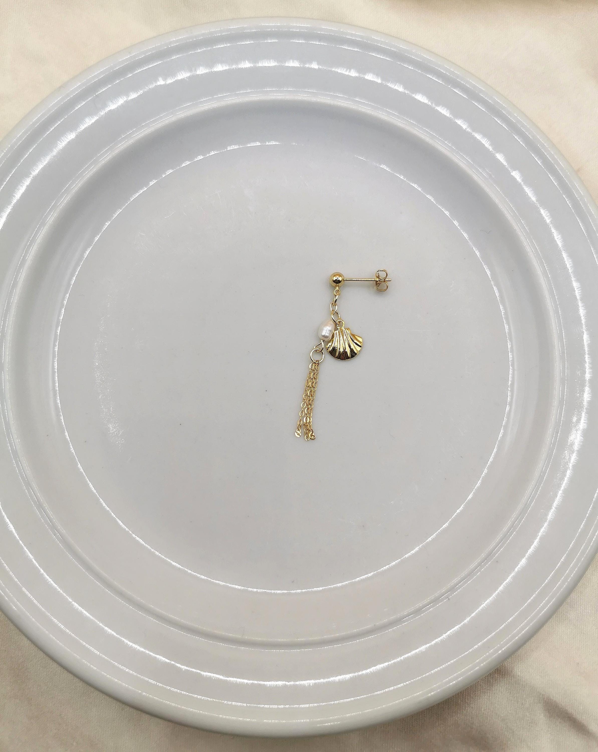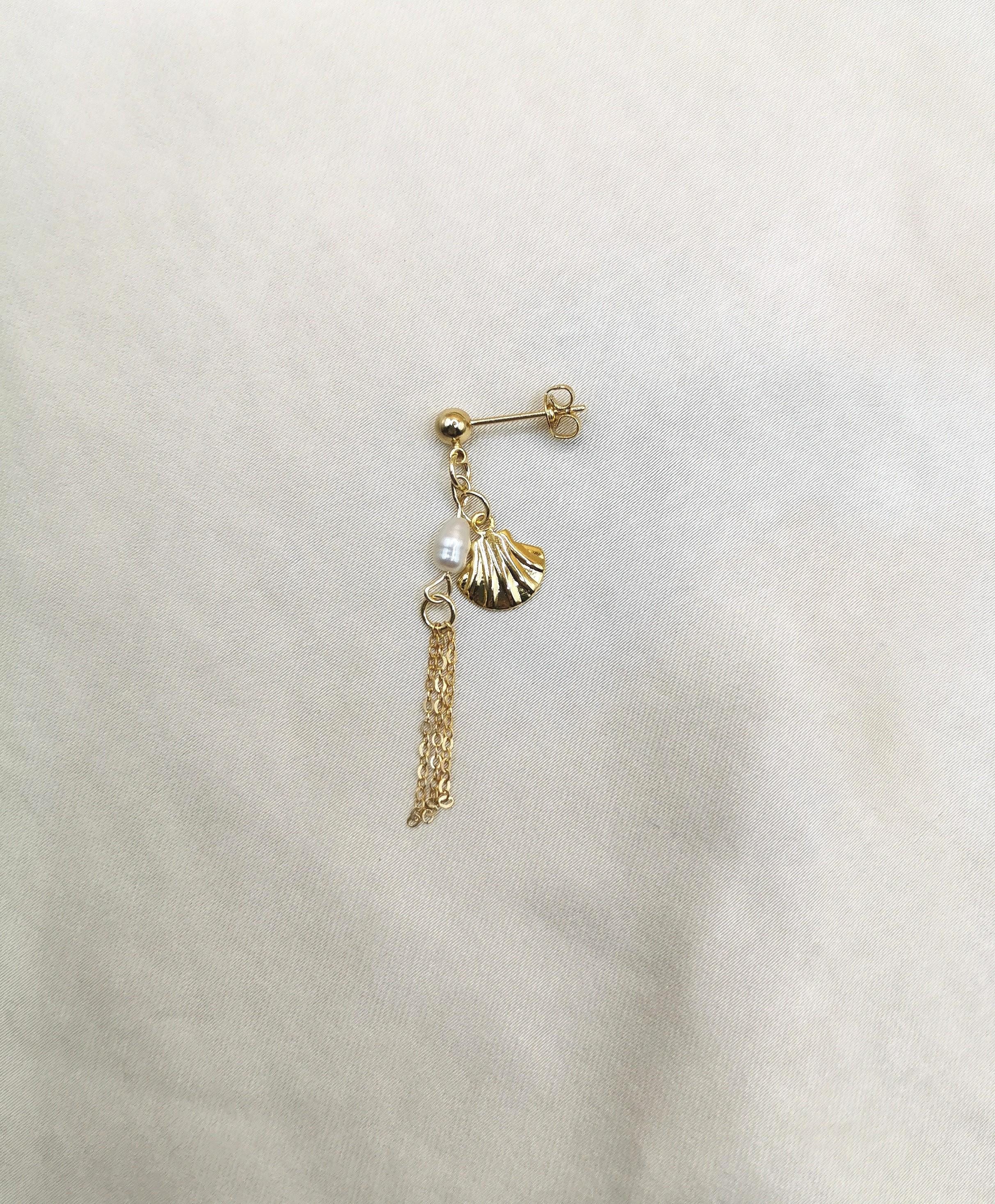 Beautiful natural freshwater pearl gold earrings with seashell, for the summer and beach outing memories.