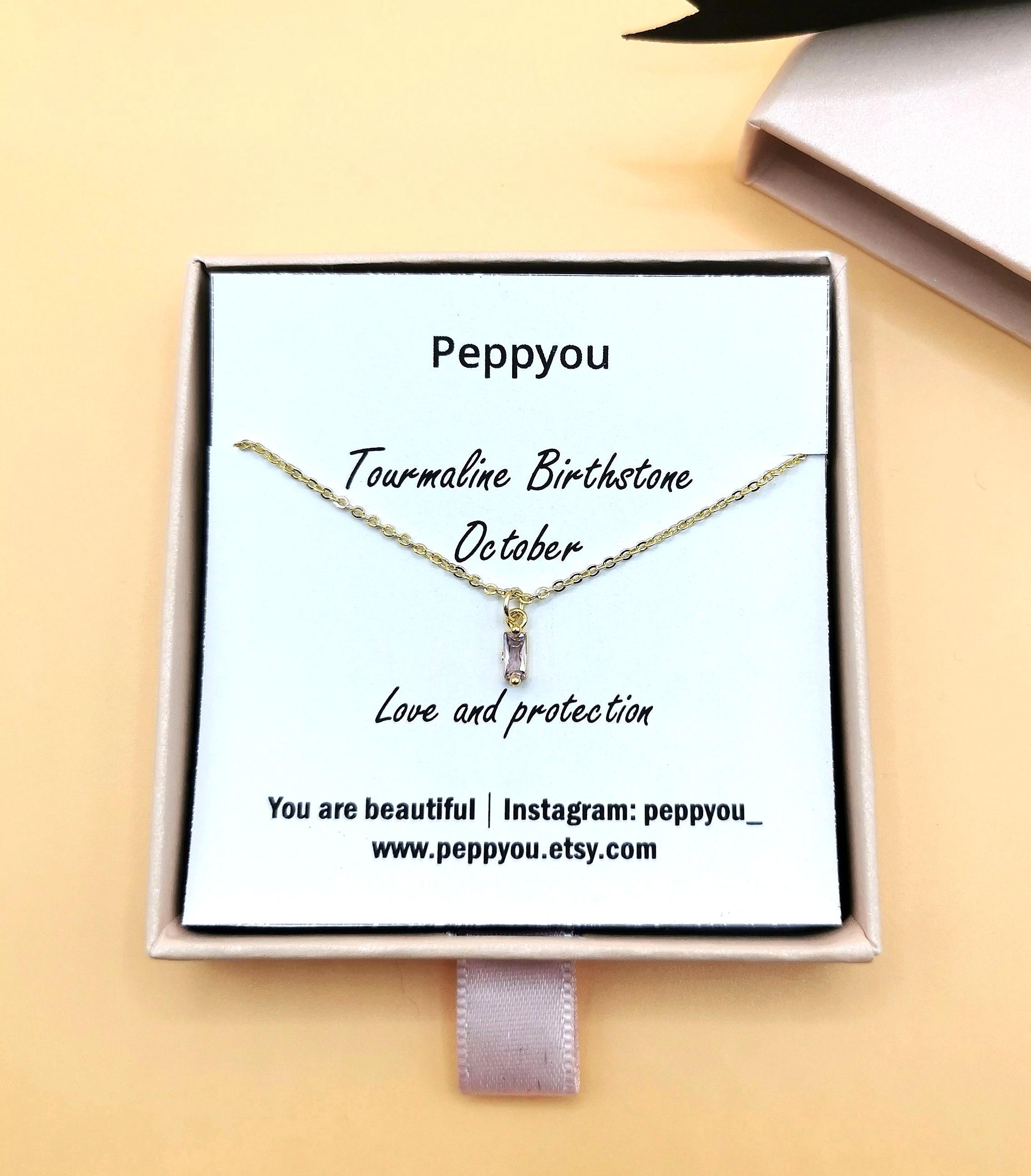 Tourmaline Cubic Zirconia Birthstone necklace makes a lovely gift for family and friends with October birthdays.