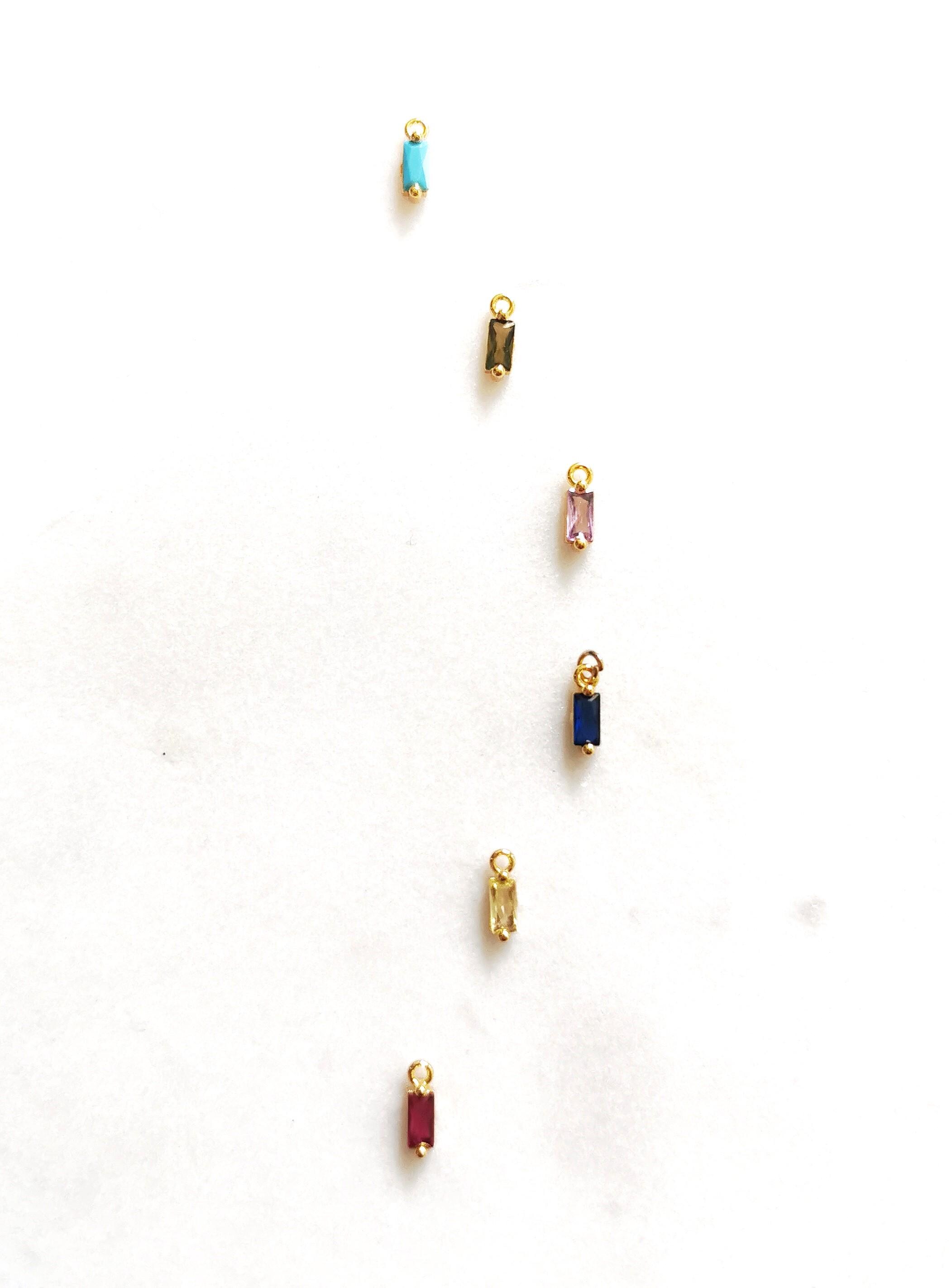 - Gold plated Cubic Zirconia birthstone measures at 7mm x 3mm