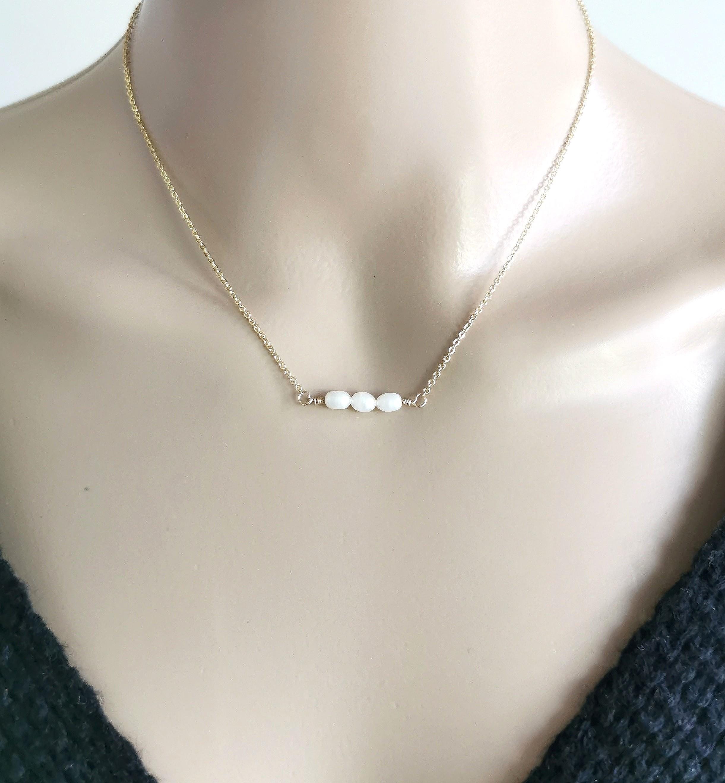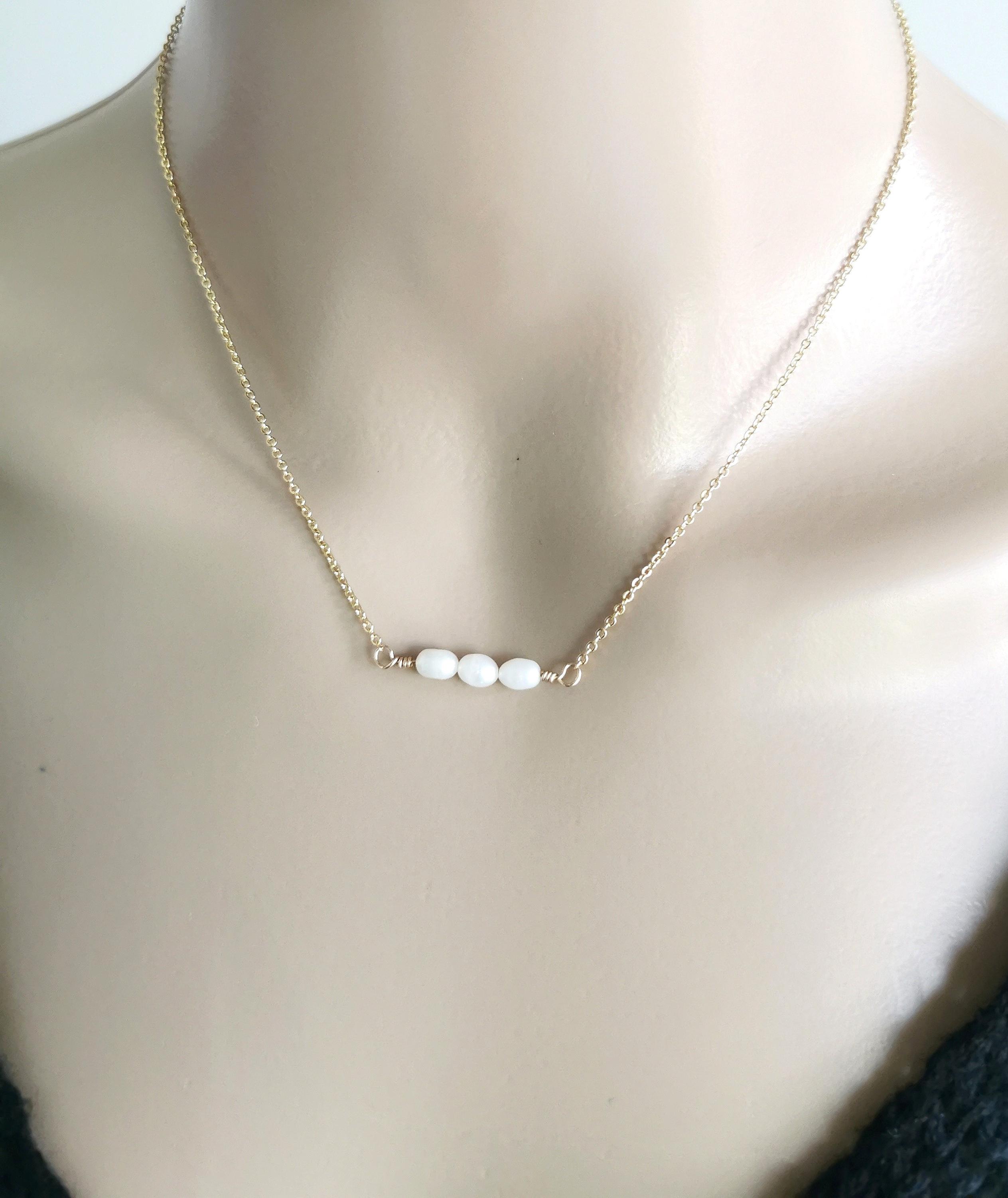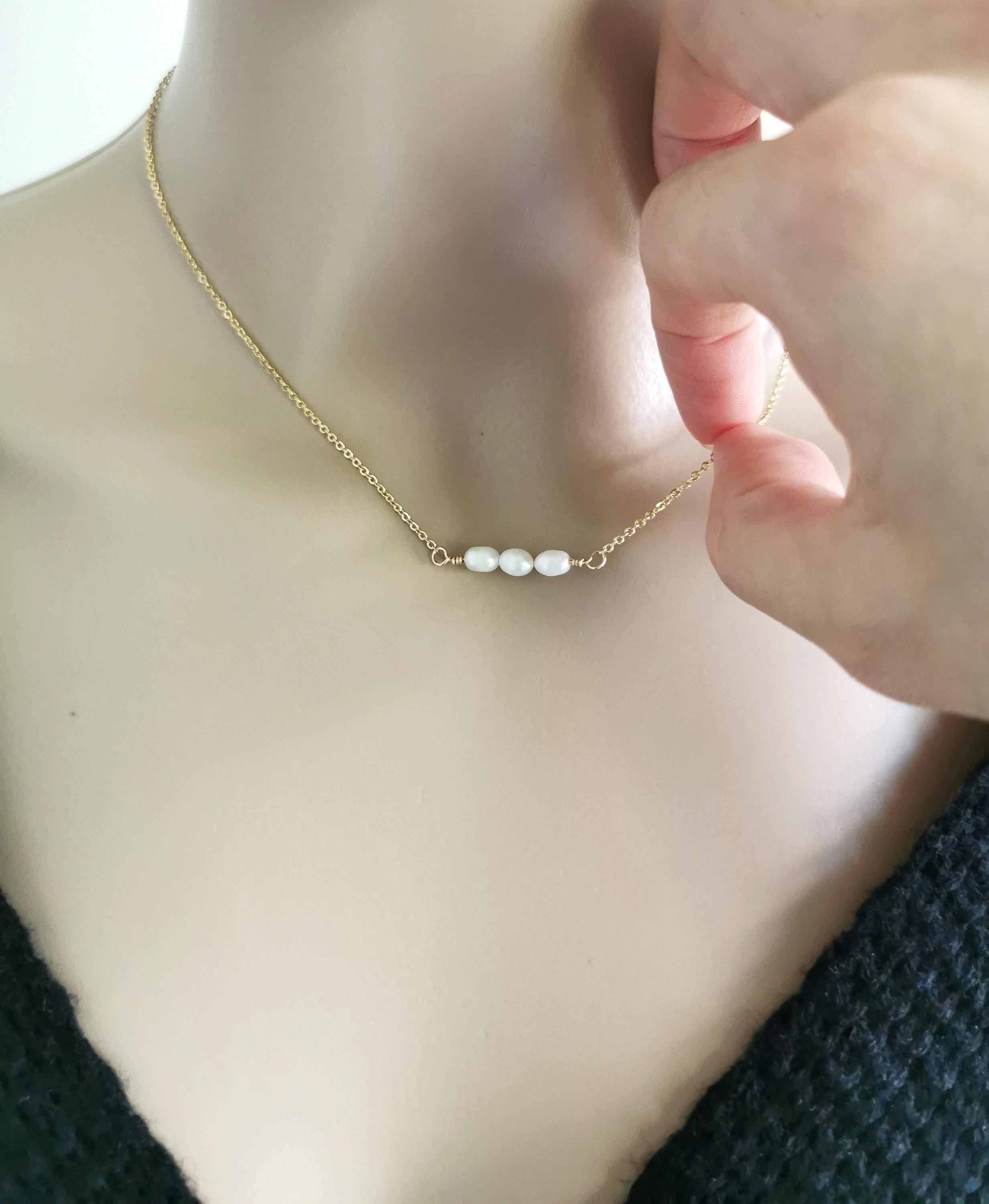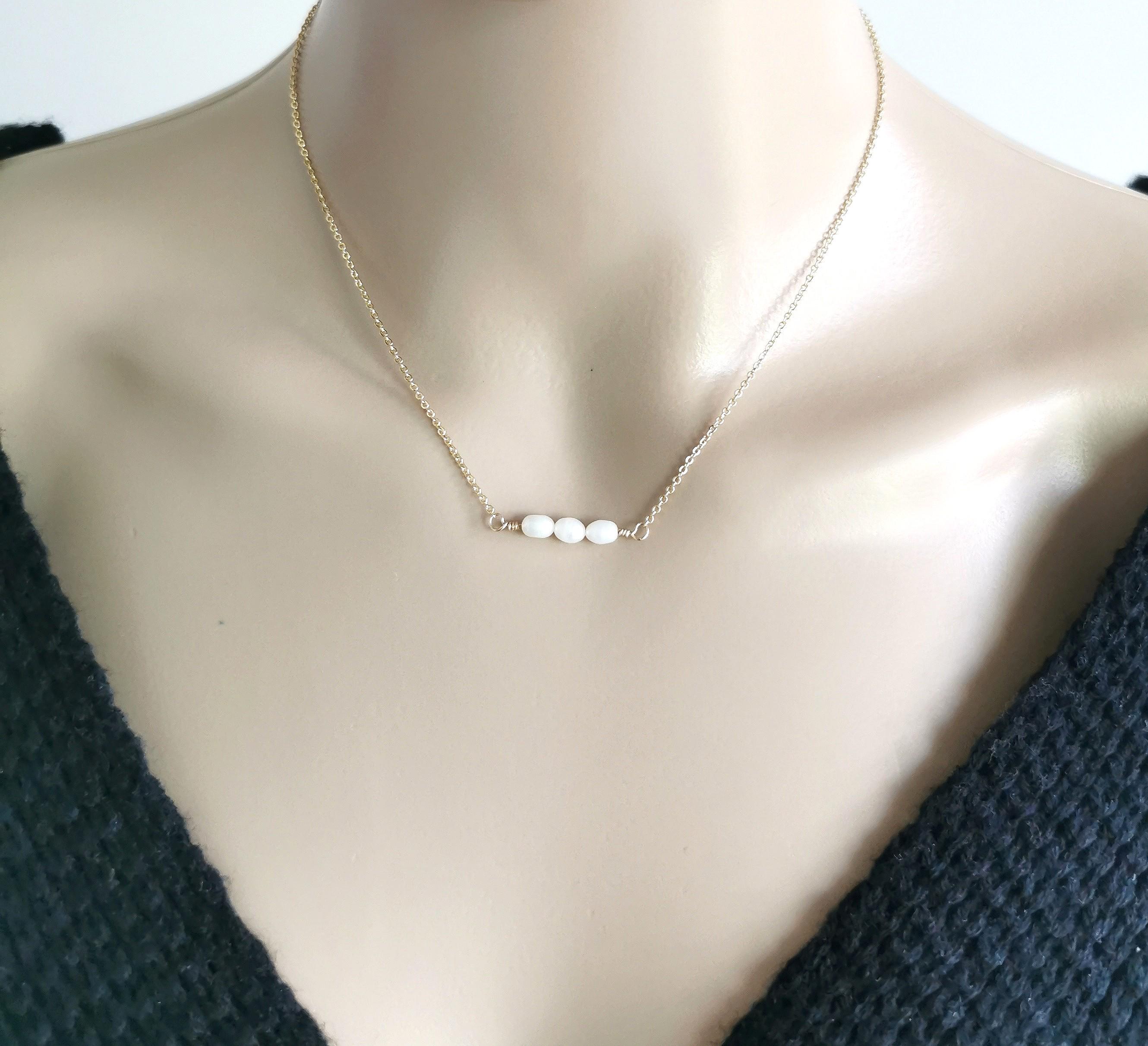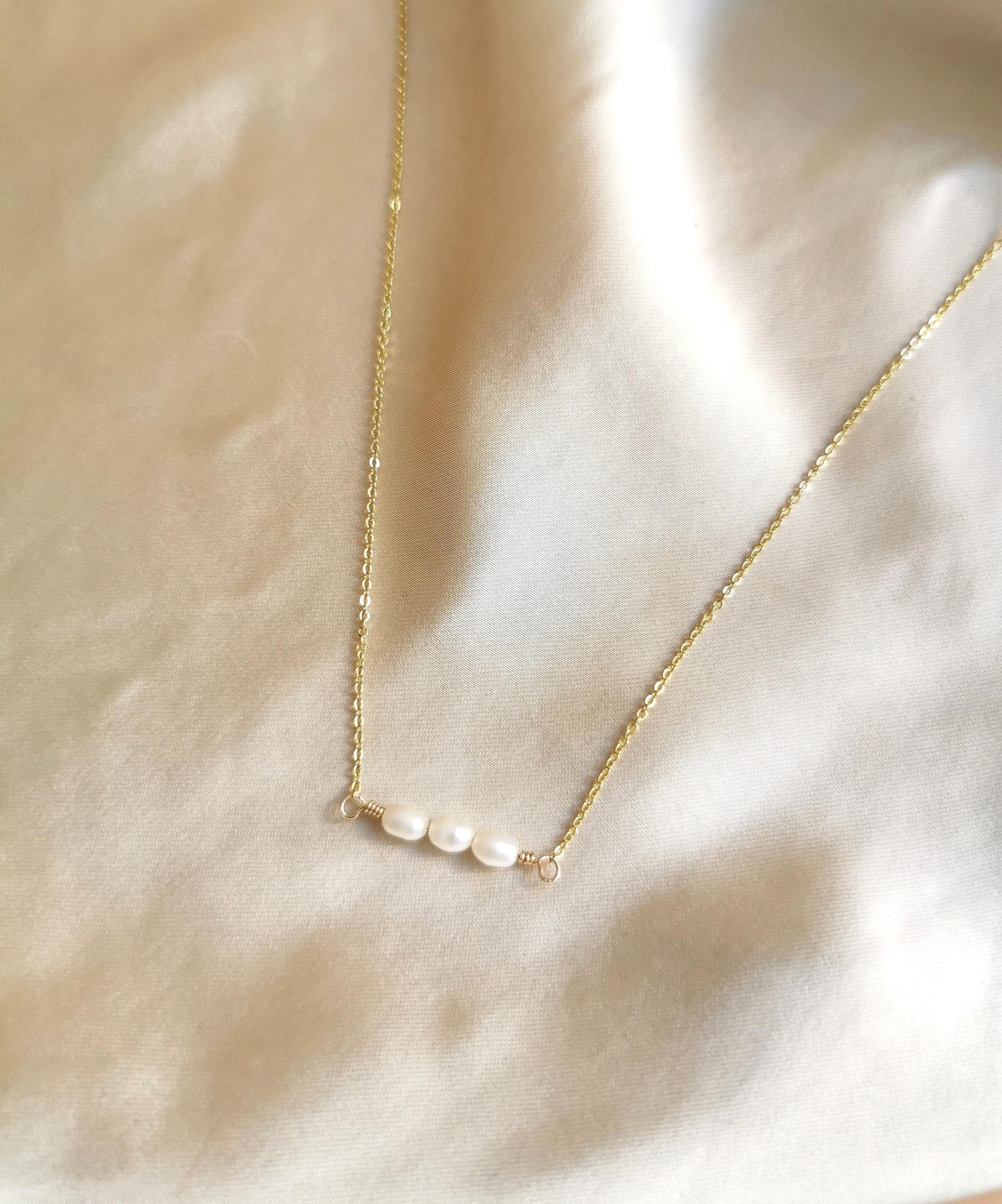 Natural freshwater pearl necklace, minimalist and dainty elegant piece of custom jewelry.