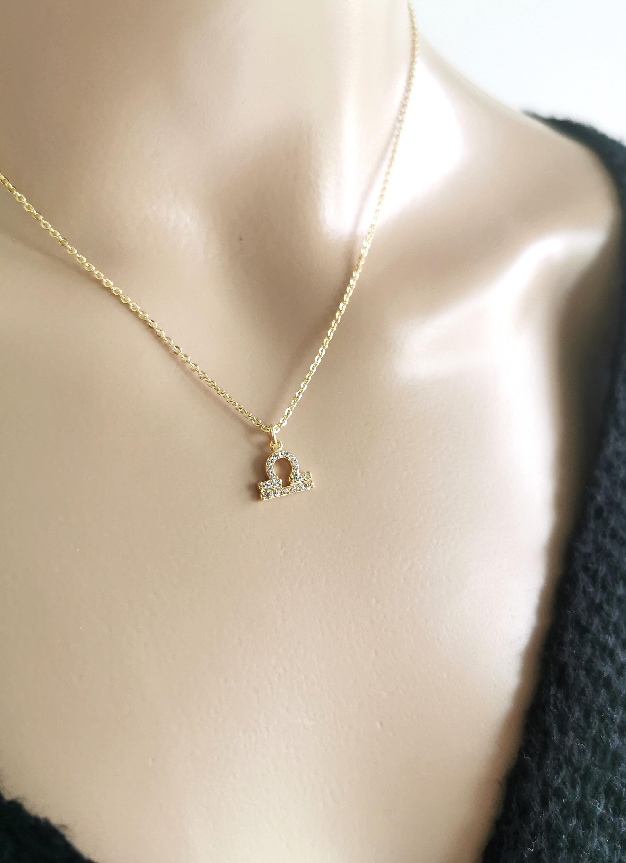 Libra gold necklace, zodiac for September and October months.