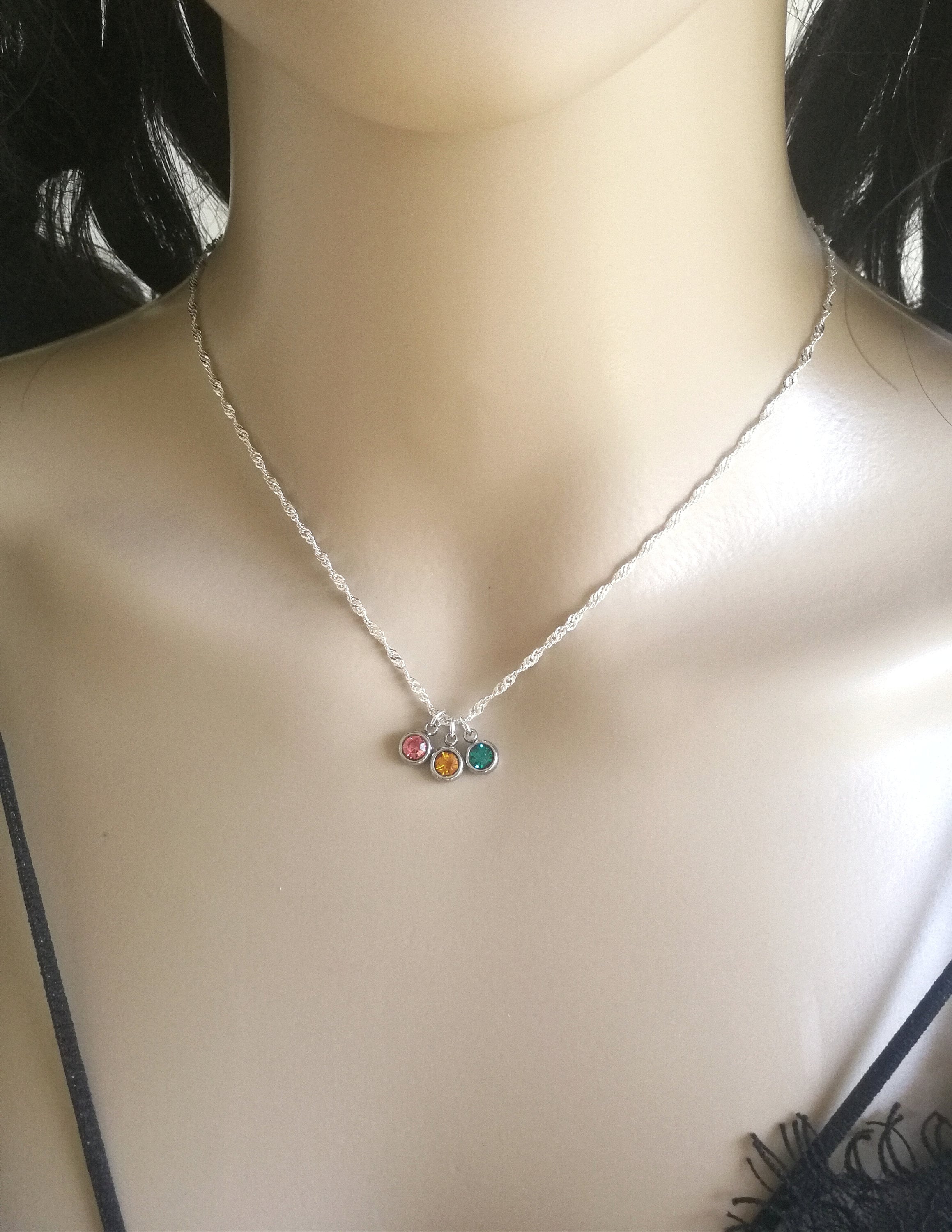 - image 7 model is wearing 15 inches length with 3 birthstones on twisted shiny chain