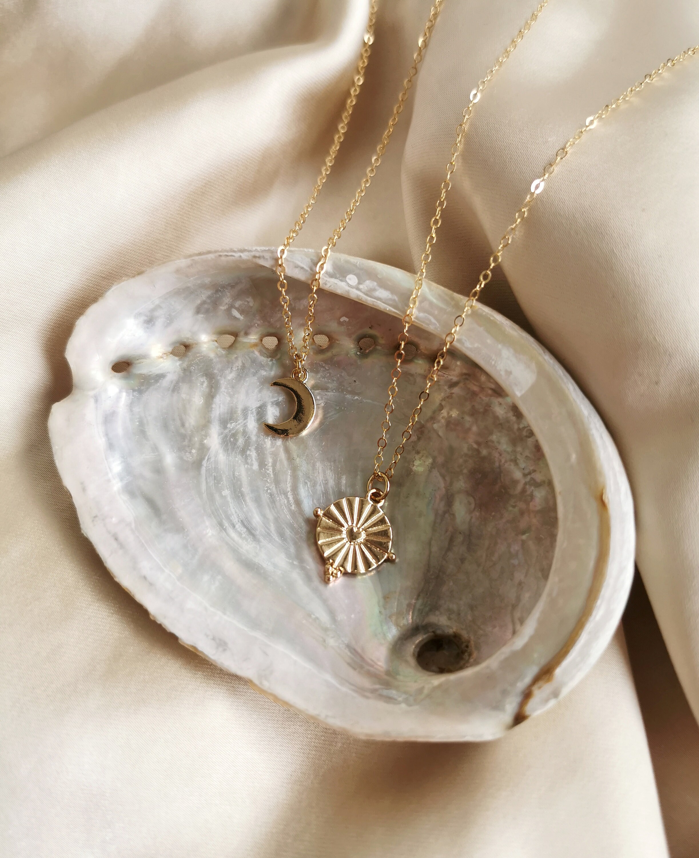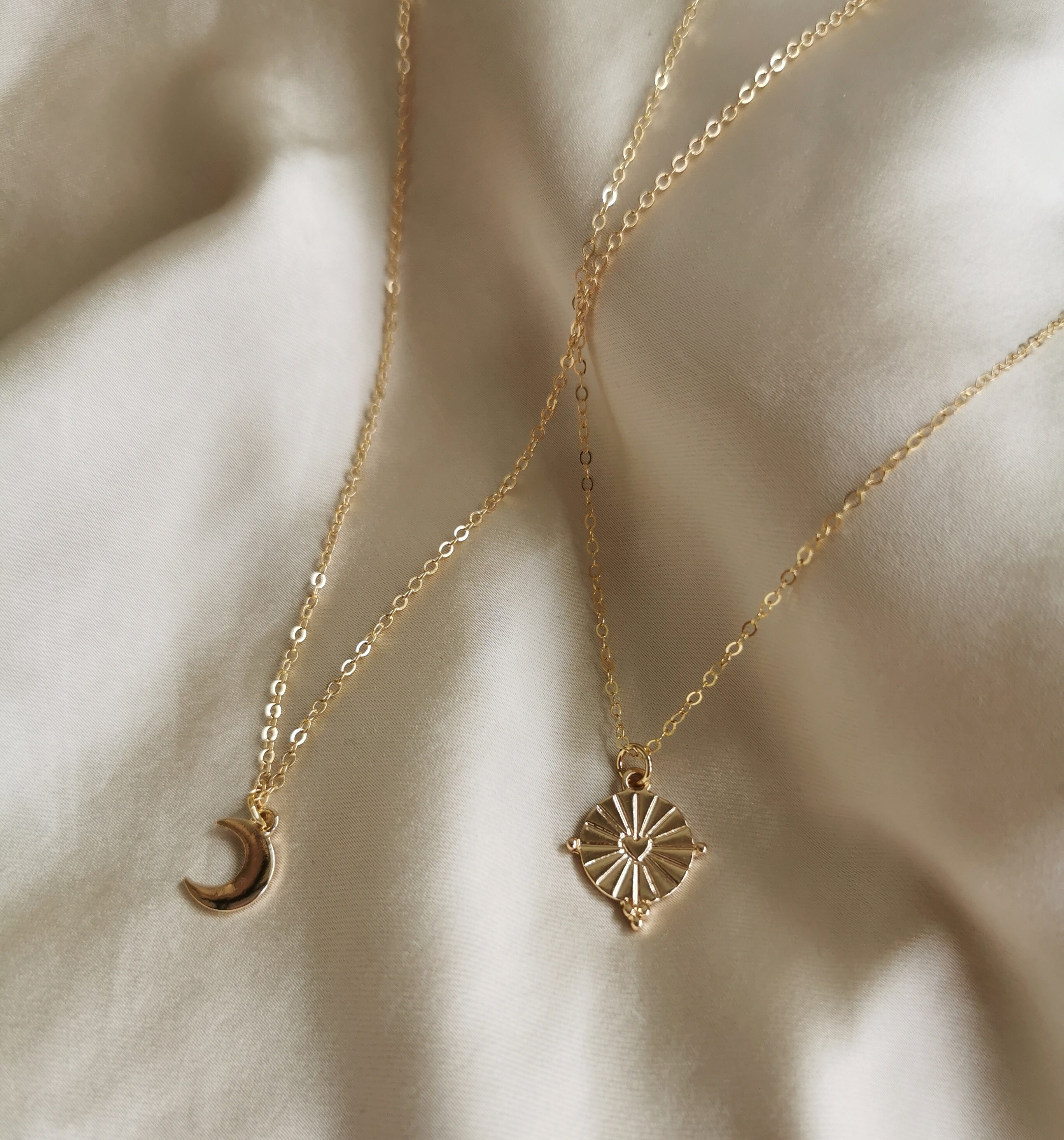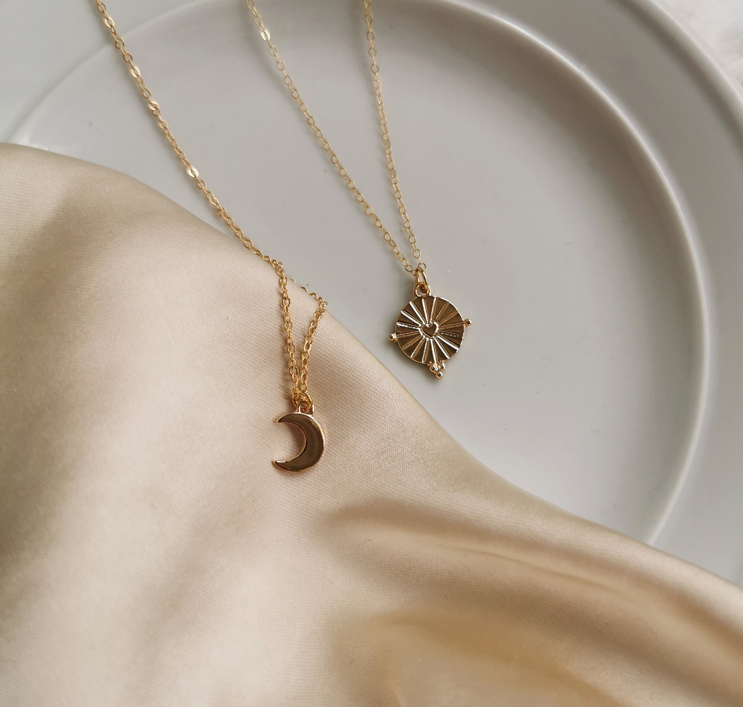 Comes in dainty 14k gold filled chain and gold plated chain. Available for selection at checkout.